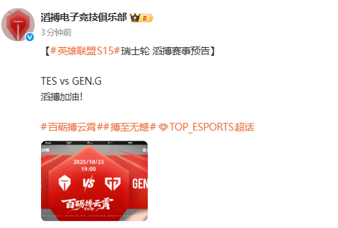 即将对战GEN,TES发布赛前预告:百砺搏云霄,滔搏加油!