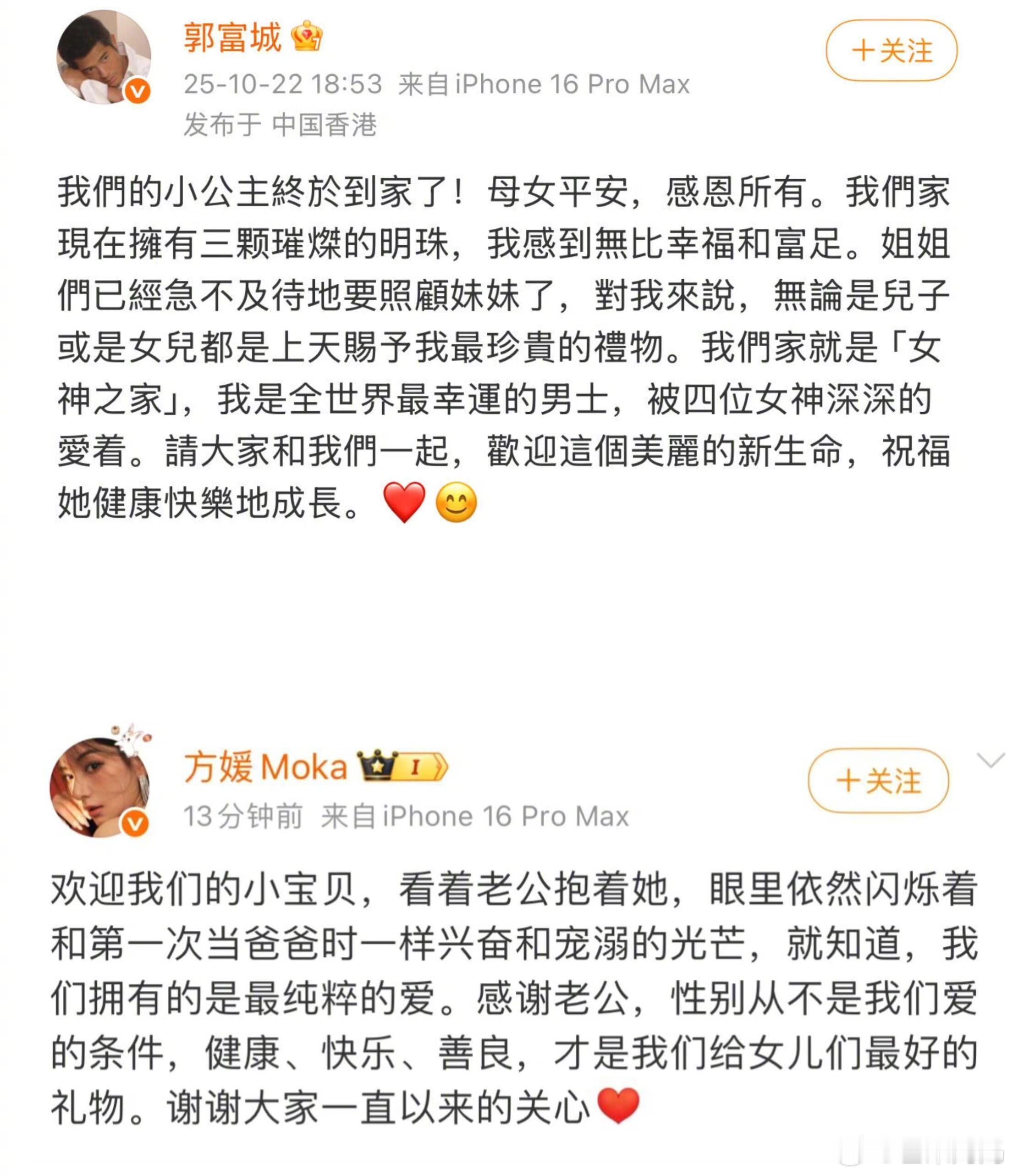 方媛 性别从不是我们爱的条件看了下评论觉得郭富城方媛也很不容易,没回应追着说他们想要儿子,回应了又说越强调越想要什么,说什么都要被揣测……不过事实证明基因好生出的孩子鼻梁可以这么高的像开了美颜,天王之家以后就是幸福的女神之家了!!
