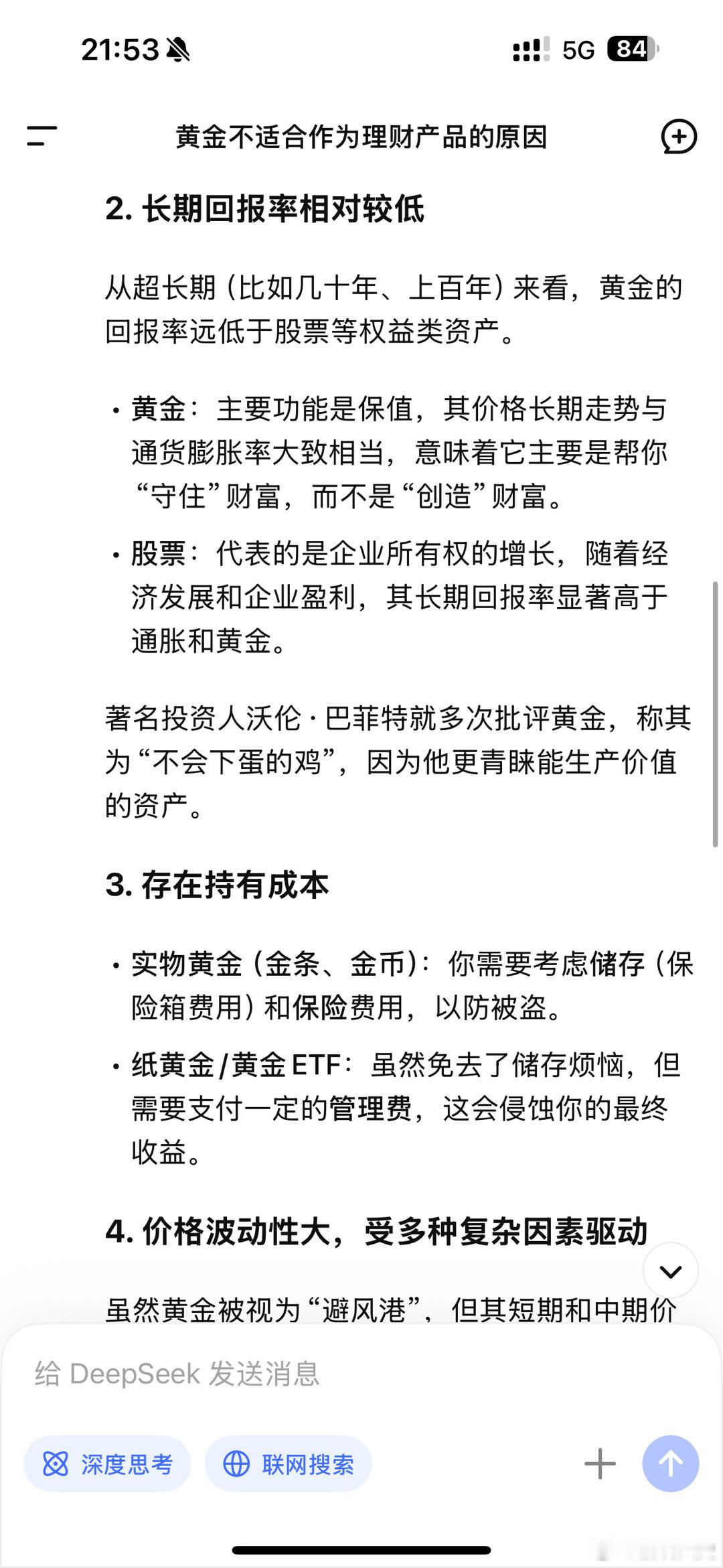 听泉赏宝不建议普通人买黄金稍微了解一点金融知识就知道黄金并不是好的理财产品