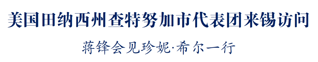蒋锋对查特努加市代表团的到访表示欢迎,并简要介绍了无锡经济社会发展情况。他说,两市自1982年结为友城以来,始终相向而行、携手并进,开展丰富务实的交往合作,成为实实在在的老朋友、好伙伴。期待双方在友城框架下,继续聚焦先进制造业、科技创新等优势领域探寻合作机会,支持企业加强考察互访、实现共赢发展,同时共同抢抓无锡建设“音乐之都”良好机遇,推动双方在音乐、经贸、旅游、文化等方面密切交流,进一步增强互信、加深感情,促进友城交往不断向更高水平更深层次迈进。