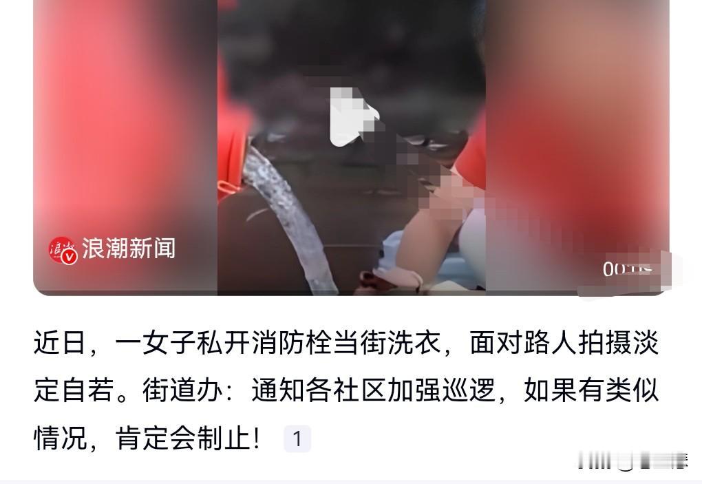 这也太爱贪小便宜了。 这是当成自己家的啦? 近日,女子私开消防栓当街洗衣,面对他人的拍摄,她非常的淡定。 女子并没有权利这么做,但是她却做出这种行为。 这是一种没有公德心的行为。 街道办社会通知各需要去加强巡逻。如果有发现这种情况肯定会制止。