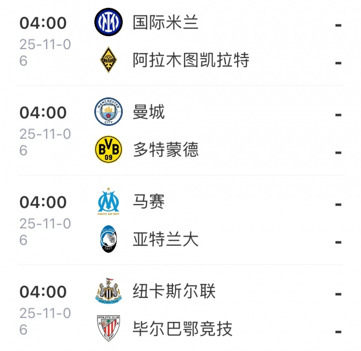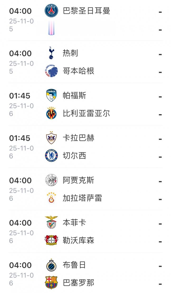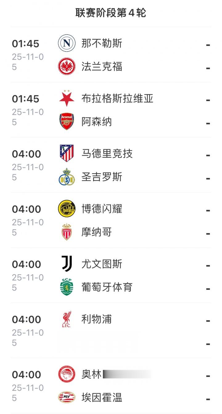欧冠联赛阶段第4轮预告↓