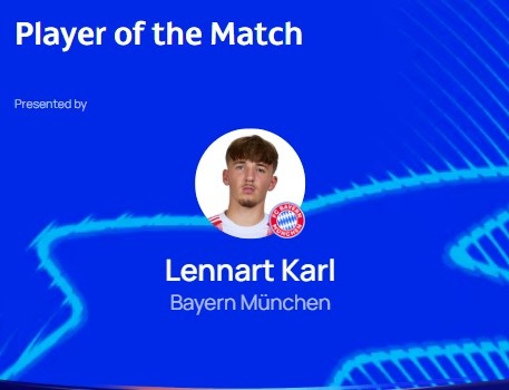 本场比赛拜仁17岁小将卡尔发挥出色,打进球队首粒进球,赛后他也当选欧冠官方评选出的本场最佳球员。