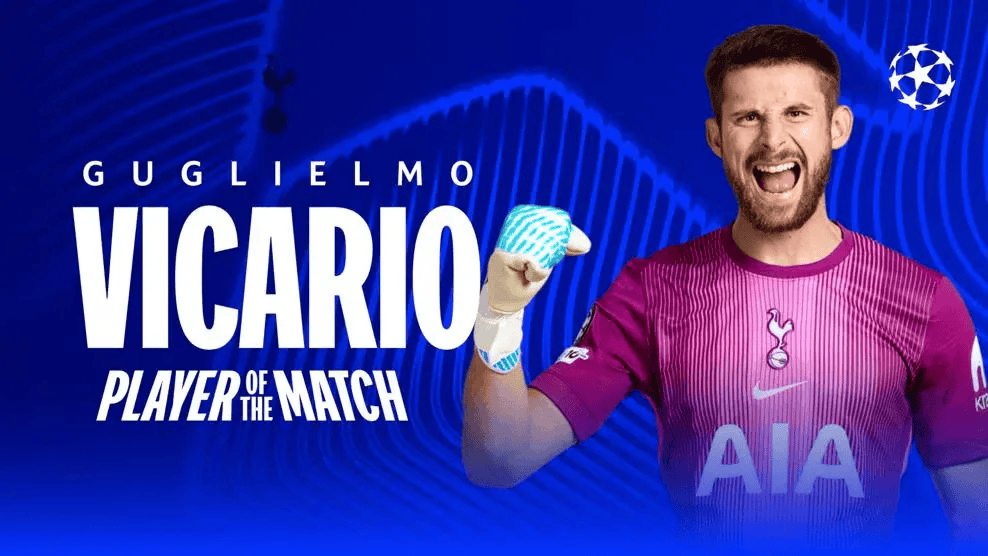 虎扑10月23日讯欧冠联赛阶段第三轮,热刺客场0-0战平摩纳哥。赛后,维卡里奥当选本场比赛最佳球员。