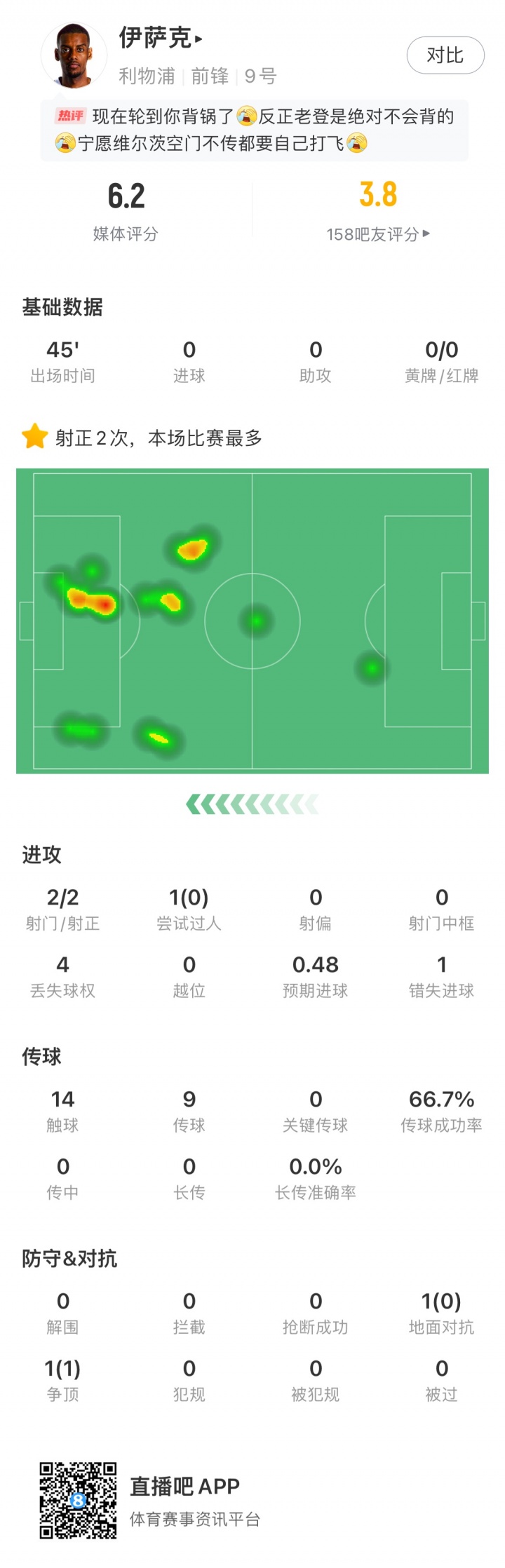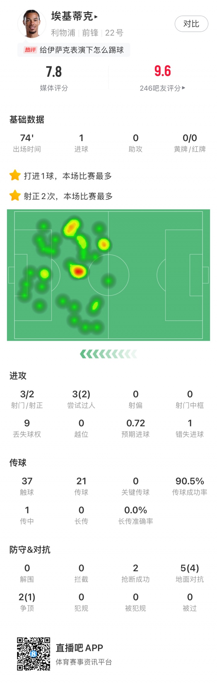 伊萨克腹股沟不适,半场被换下。维尔茨本场贡献2次助攻,埃基蒂克攻入一球。