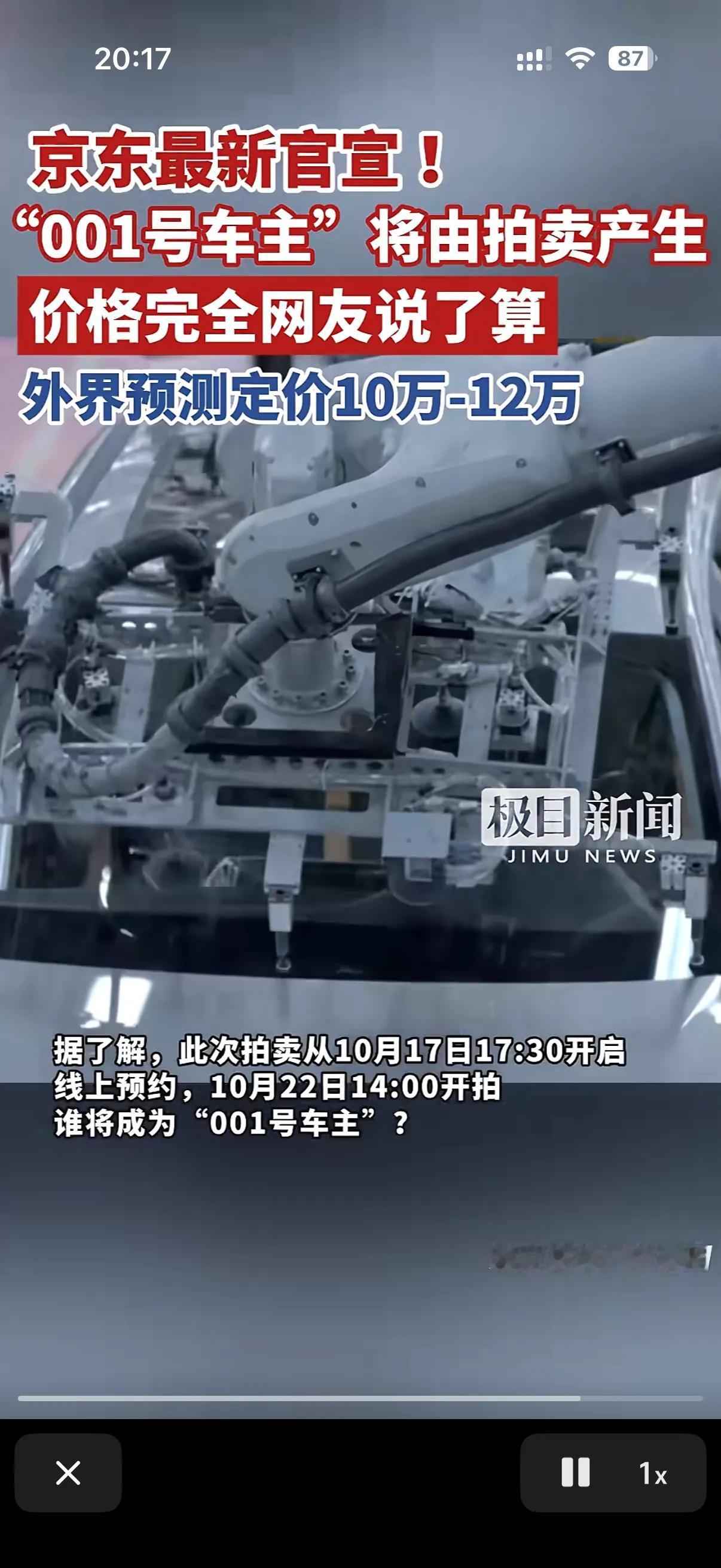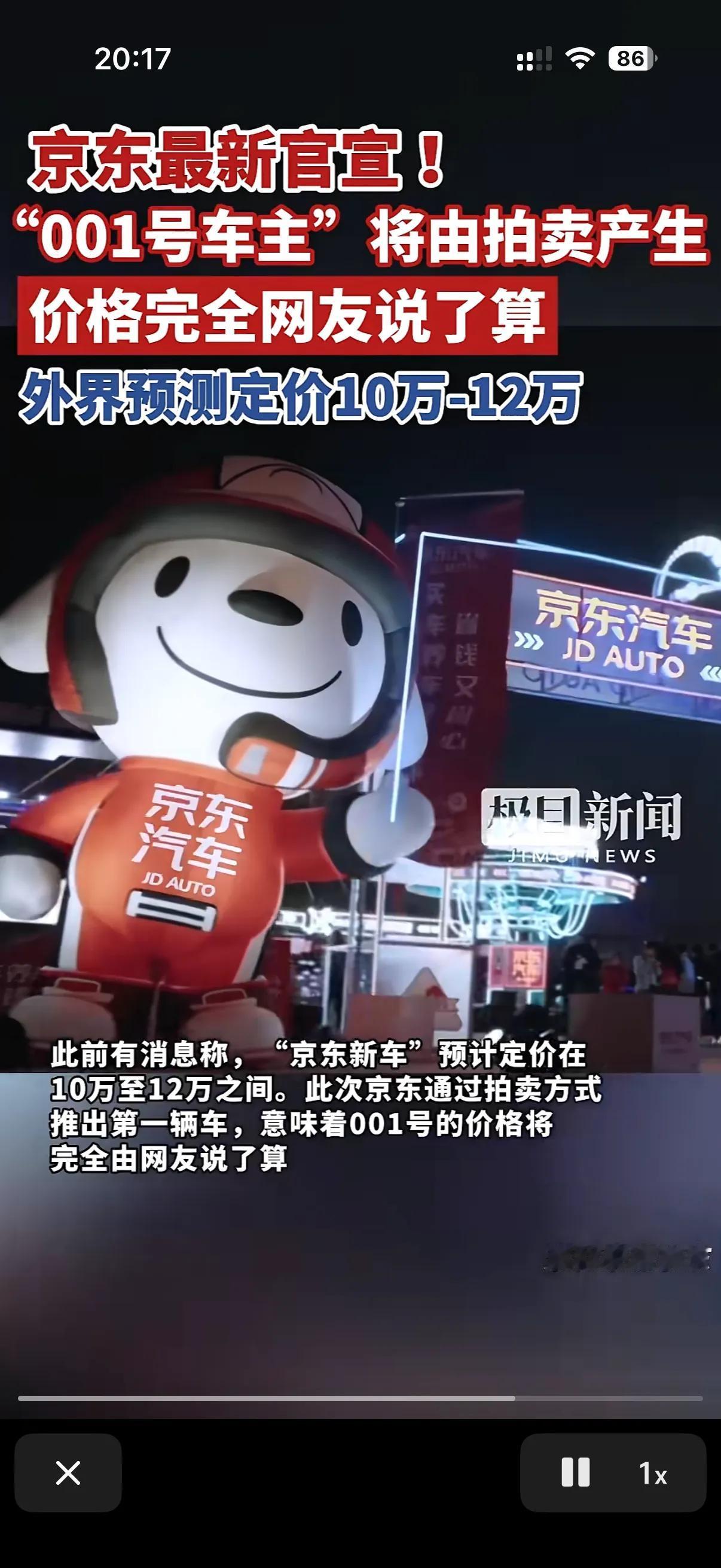 相信大家一遭上就被京东001号车拍出7819万元天价的新闻刷屏了! 前几天京东就放出新闻,和汽车制造业的龙头企业联合造车了! 昨天京东又在拍卖平台上开始拍卖第一台联合造好的京东001号新车! 这台车的任何数据大家都不知道,这是典型的盲盒式拍卖! 但是依然引起了大家的兴趣,不少人踊跃的加拍! 最后更是拍出了7819万的天价! 但是最后真的能以这个价格成交么? 很多人表示拍卖价是拍卖价,成交可就未必了,要知道昨天拍卖京东001车的定金只是100块钱! 换句话说谁都可以加入这个竞拍环节,而且哪怕你是拍了一个亿上去,到了最后京东交车支付的环节,你毁约了损失的也只是这100块钱! 很多人表示这次京东拍卖新车,更像是一场营销,不过这7819万的成交价格更像是玩失控了。他们忽略了网友喜欢找乐子的心态!