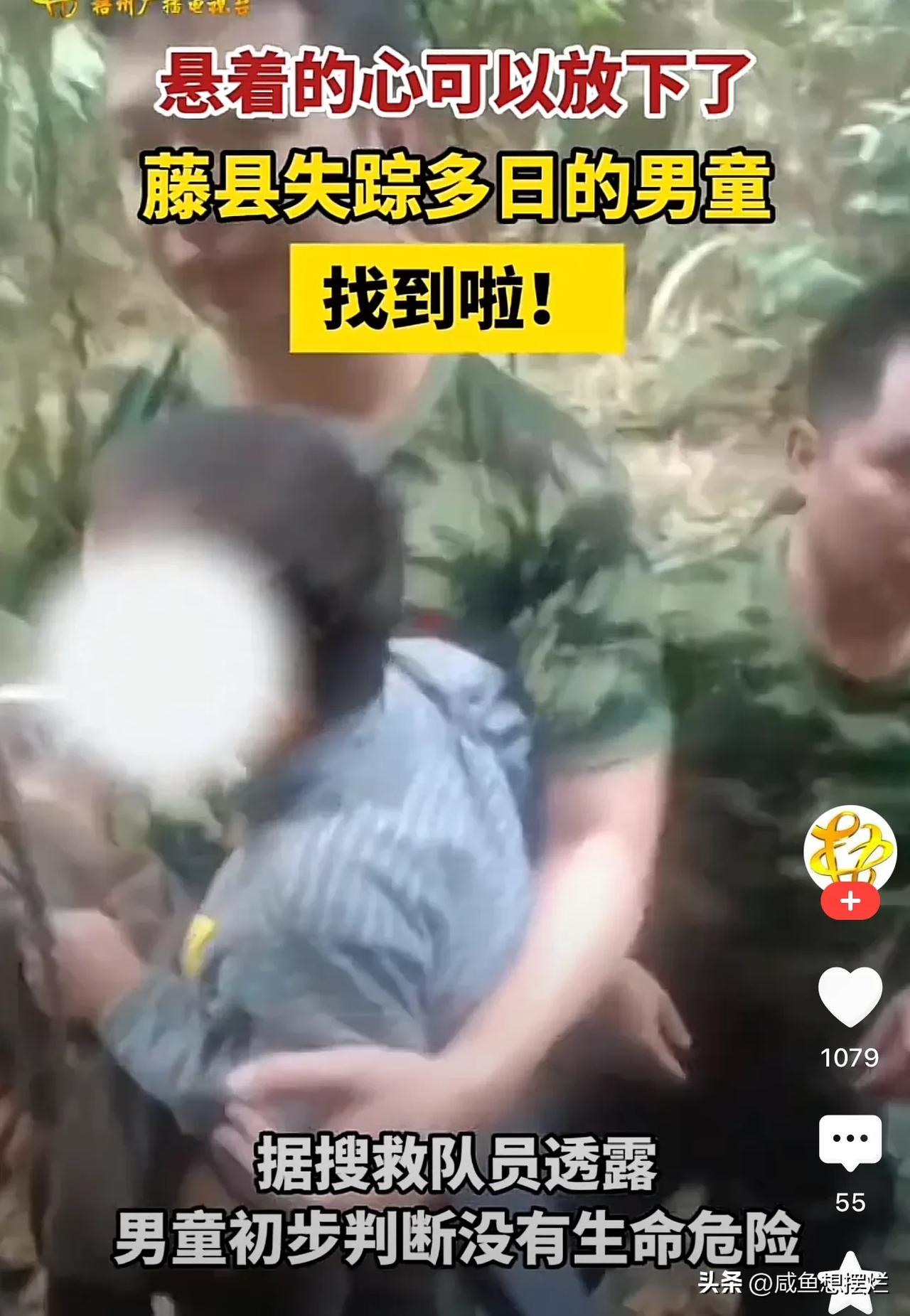 好消息,广西藤县失踪的8岁自闭症小男孩找到了! 真是福大命大,小孩没有生命危险