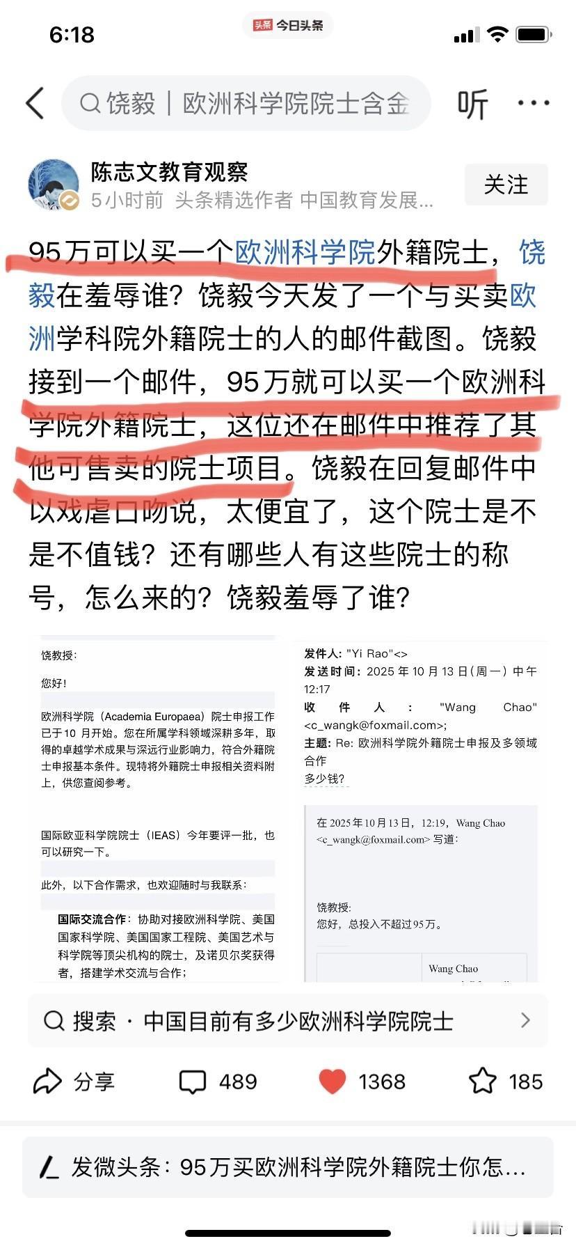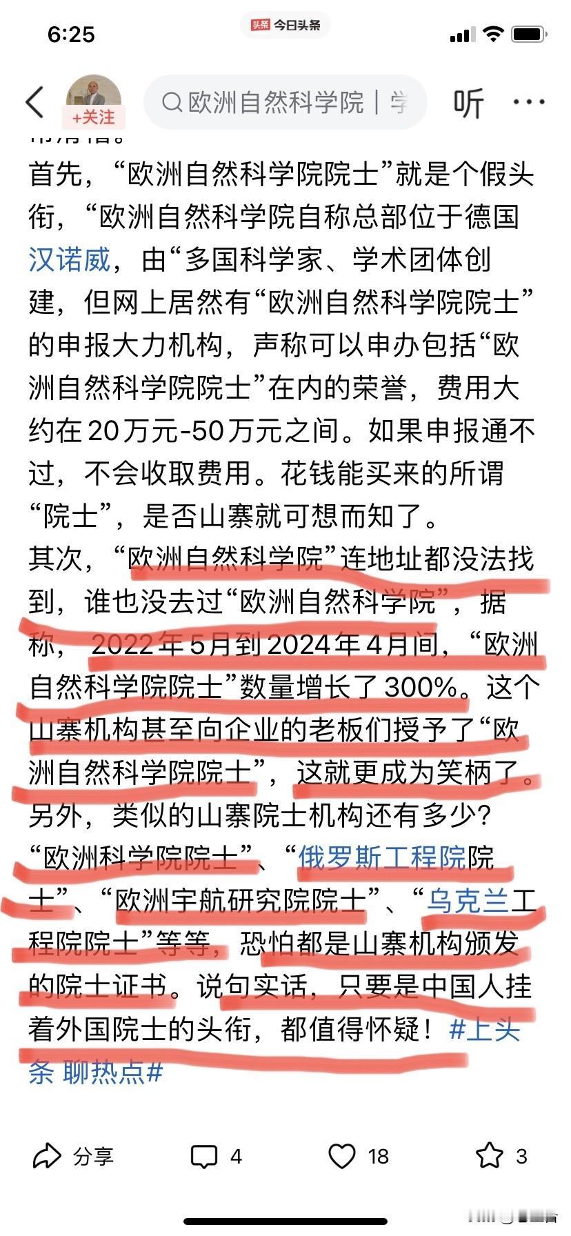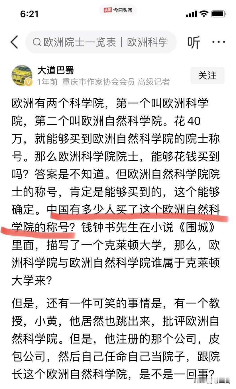 95万!一个欧洲科学院外籍院士! 200万!一个欧洲自然科学院外籍院士! 西方人真会赚钱啊! 大学文凭可以赚钱! 学术杂志可以赚钱! 院士头衔也可以赚钱! …… 当然,有需求才有供给! 西方人赚得盆满钵满, 离不开一些单位的虚荣心! 离不开一些LD的偏好和推崇! 离不开这些单位和LD煽起的强劲需求! …… 只是当学术都变动了金钱交易, 那也意味着斯文扫地了!