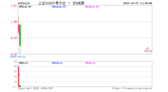 上证580ETF易方达(530100)业绩比较基准为上证580指数收益率,管理人为易方达基金管理有限公司,基金经理为李博扬,成立(2025-10-10)以来回报为-0.17%。