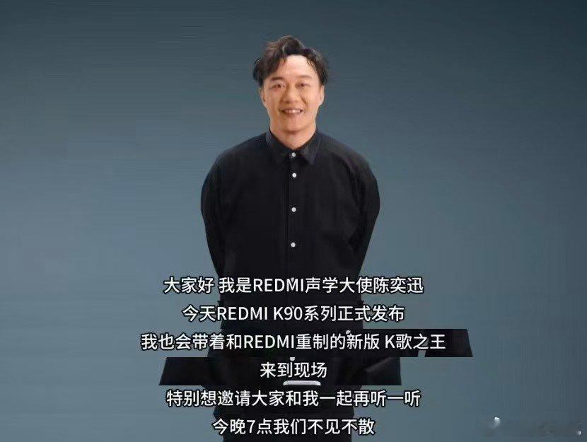 陈奕迅将现身K90发布会 看到这一次发布的好消息,真的是太棒了呀,REDMI这次之所以和陈奕迅合作,主要就是因为其音质打破了行业记录,首次把低音带到手机,实现2.1立体声——两颗超线性扬声器+超大独立低音单元,今天晚上陈奕迅带着新版《K歌之王》,空降发布会现场,真不愧是咱们的雷总呀邀你不见不散!