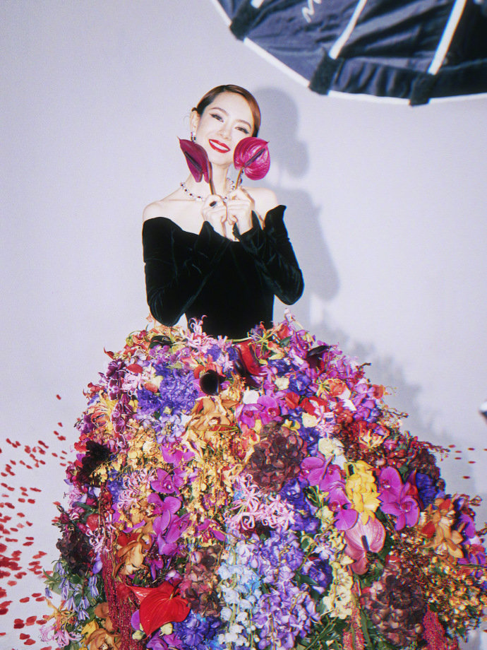 戚薇率先出图,花团锦簇的裙子🌸🌸🌸~