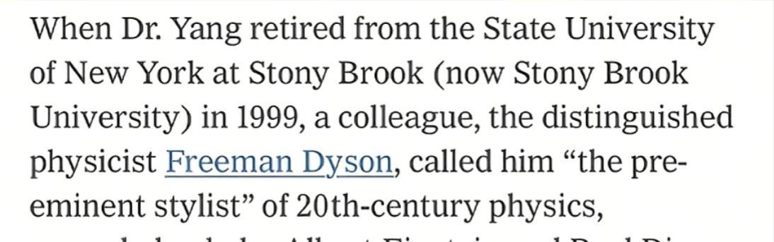 在网络上杨振宁被高估了还是低估了? 杨振宁大概是什么层次的物理学家? ------------------------------------ New York Time对他的评价是,开创性的杰出宗师,同行对他的评价是20世纪能超过他的只有爱因斯坦和狄拉克,很明显被低估了。 杨振宁亲中国导致恨国党们牙痒痒,这几天集中出现各种被高估的话术。