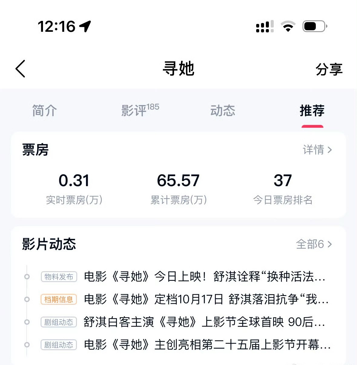10.17,舒淇《寻她》撤档了,撤档时预售65万