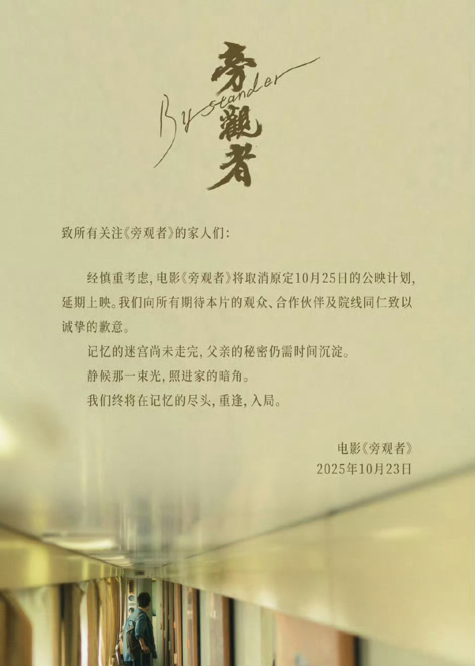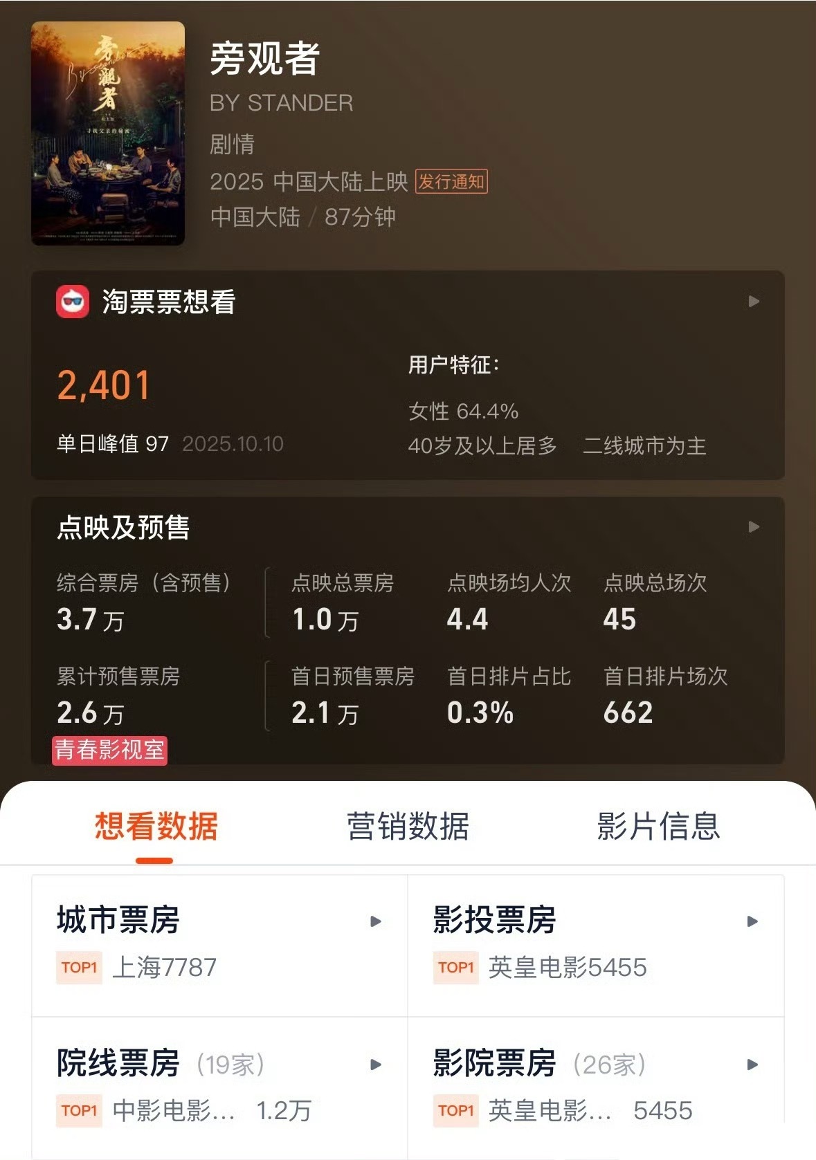 10.23,陈坤《旁观者》撤档了,撤档时预售17万