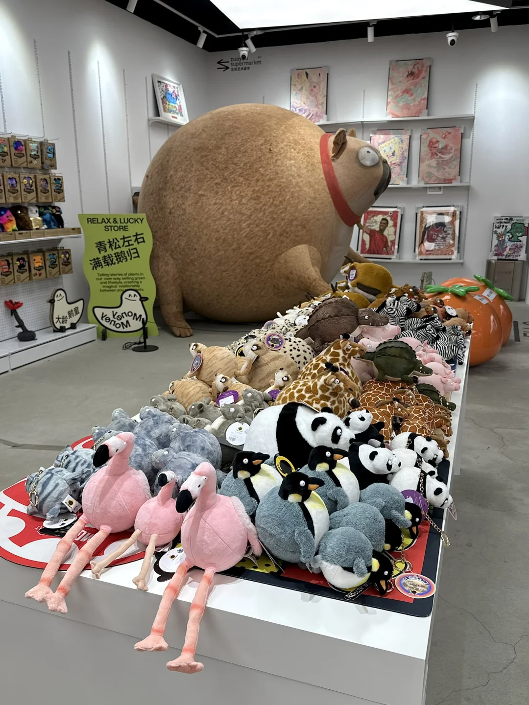 0⃣️推销 纯自由活动 社恐友好 2⃣️次元、洞大开、奇奇怪怪的东西… 迪士尼、下腰女孩…不混圈的我也能认出一二 最喜欢圆球身体的动物们 🦩火烈鸟超可爱 面积超大 玩偶衣服餐具…各种品类啥都有 不买光看就够快乐了💯 最里面台阶上去迷你画廊 目前在展作品是彩色抽象的 很好拍📷 不花一分钱爽逛 照片也有了[doge][doge]