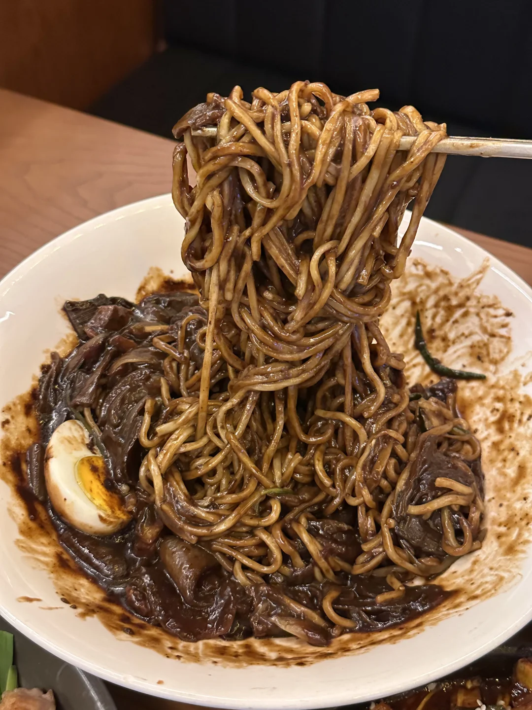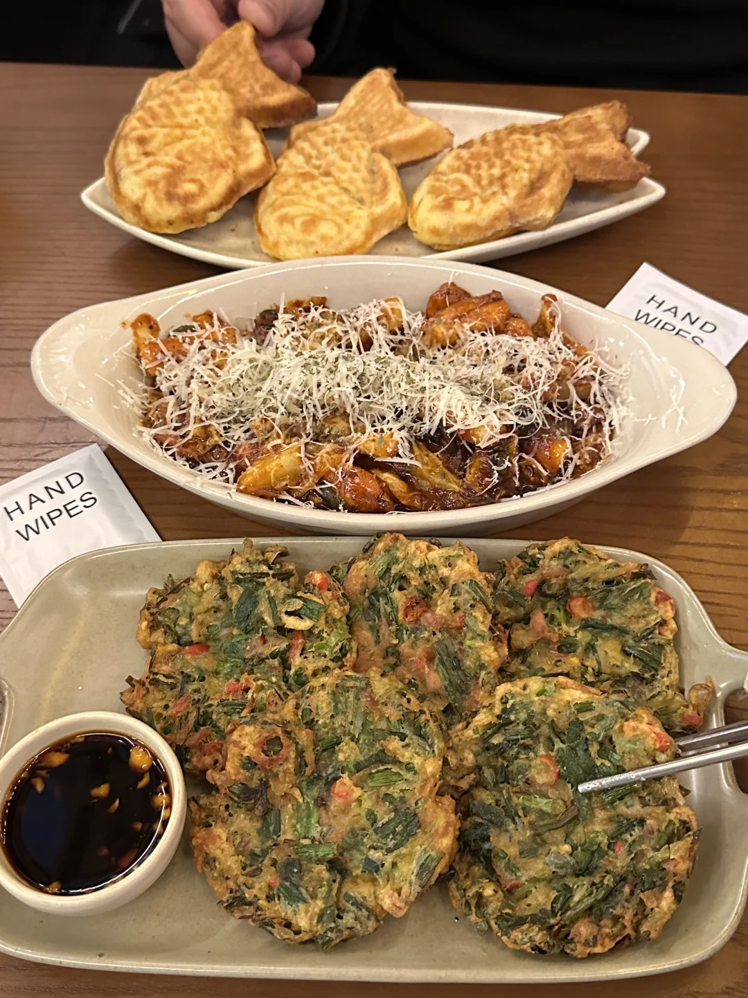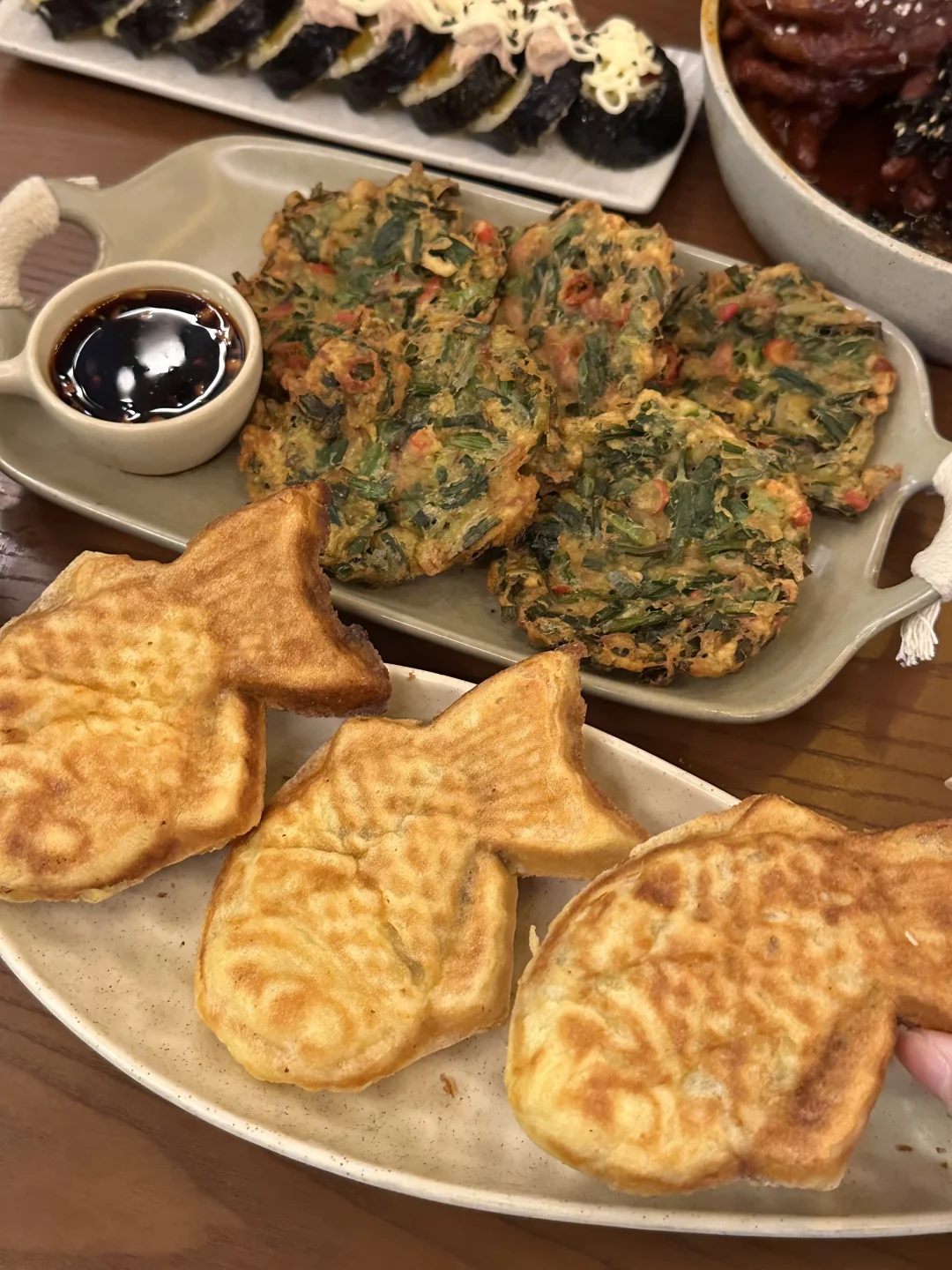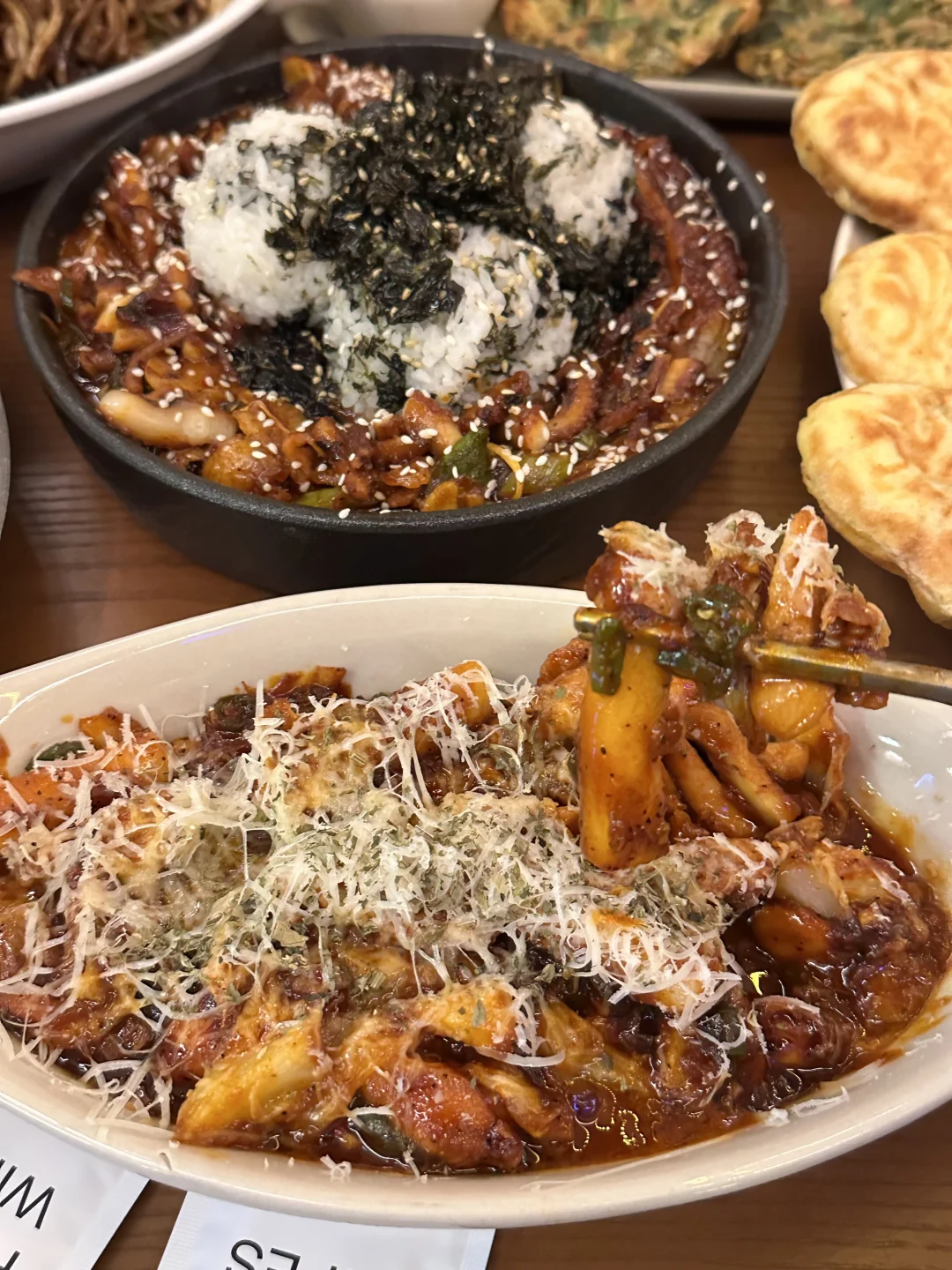 金陵中环,已经吃了十几次了 每次馋韩料都会来他家! 牛肋条+五花肉 韭菜鸡蛋饼(个人觉得比泡菜饼还要好吃 辣炒鸡 炸酱面 辣鸡爪 鲫鱼都经常吃