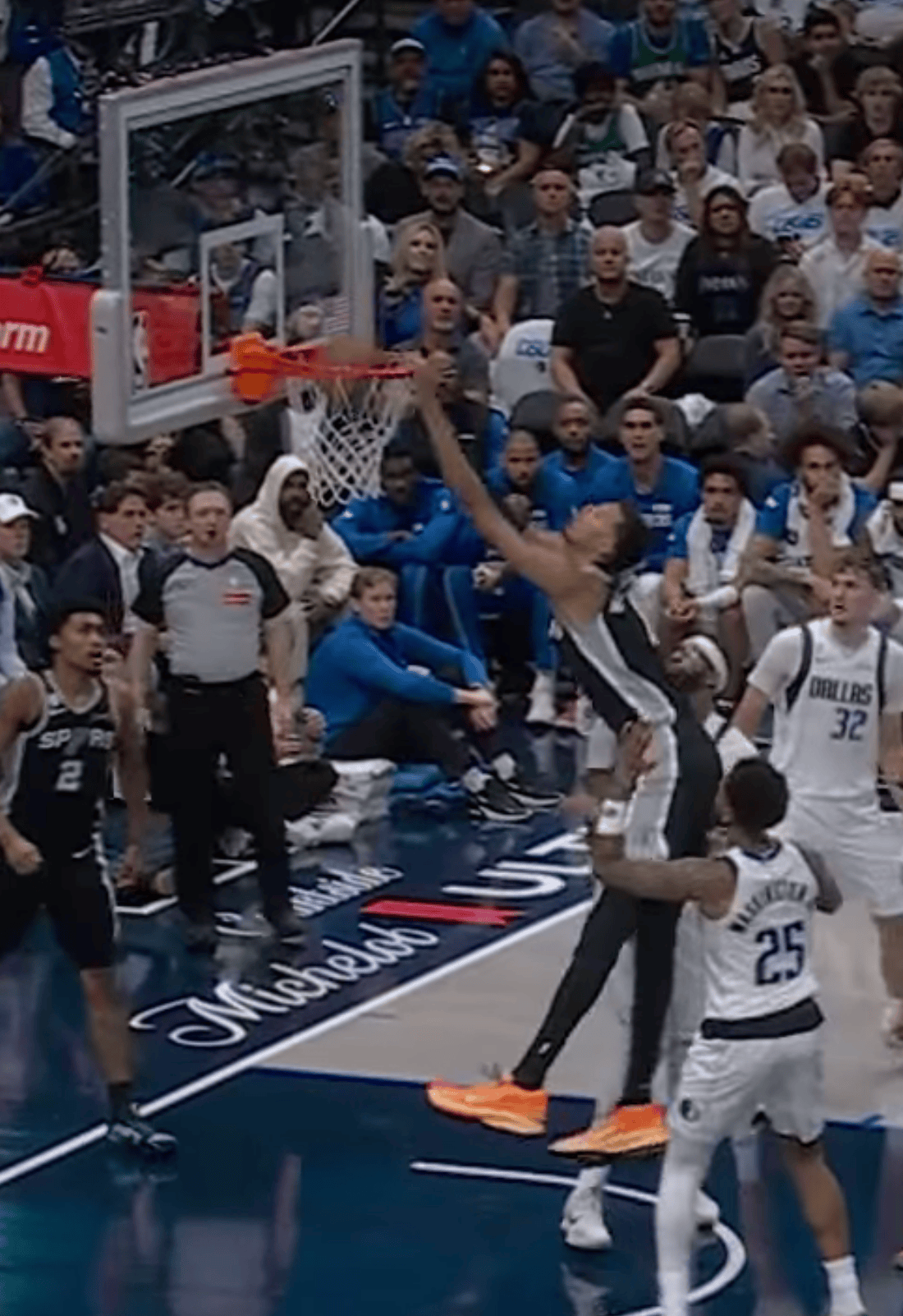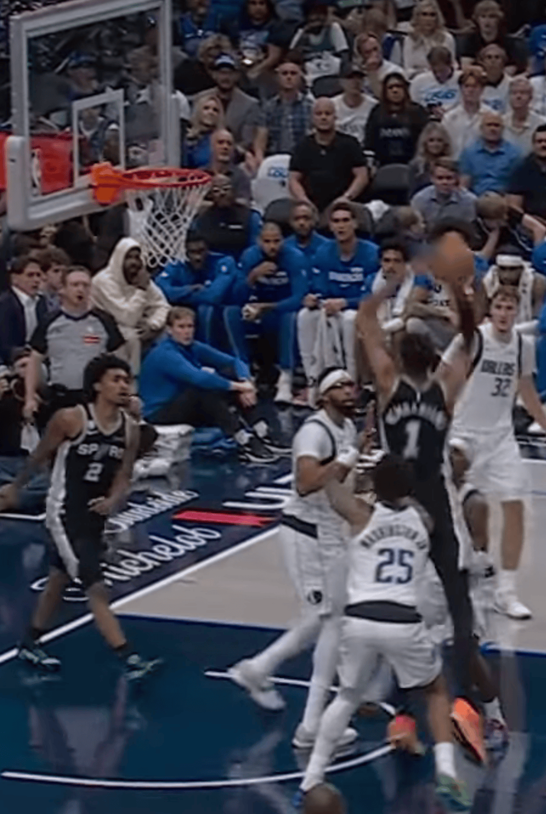 赛后,美媒NBAMemes晒出图片,表达了对马刺球员维克托-文班亚马在比赛中一次扣篮的惊叹。
