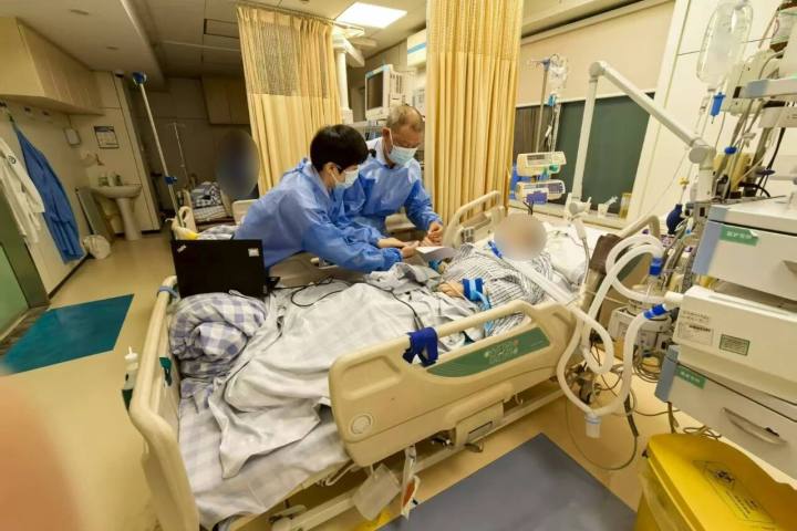 进病房前,我们穿上防护服,闷热感瞬间裹了上来。病床上的老人虚弱得很,眼睛勉强撑起一条缝。