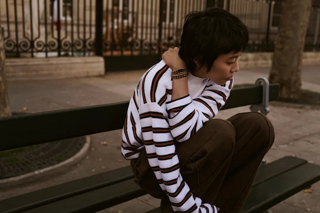 窦靖童的风格从来“打破常规”,这款PREMIÈRE ICONIC CHAIN DOUBLE ROW腕表简直为她量身定制!皮穿链能在腕间缠绕双圈,黑色漆面表盘自带不羁气场,和她的条纹装一搭,酷感里藏着优雅,随性中满是态度。