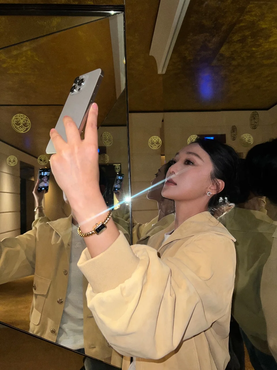 这种“双重环绕”的设计,就像她的穿搭风格,永远在经典里找突破,不羁又迷人~