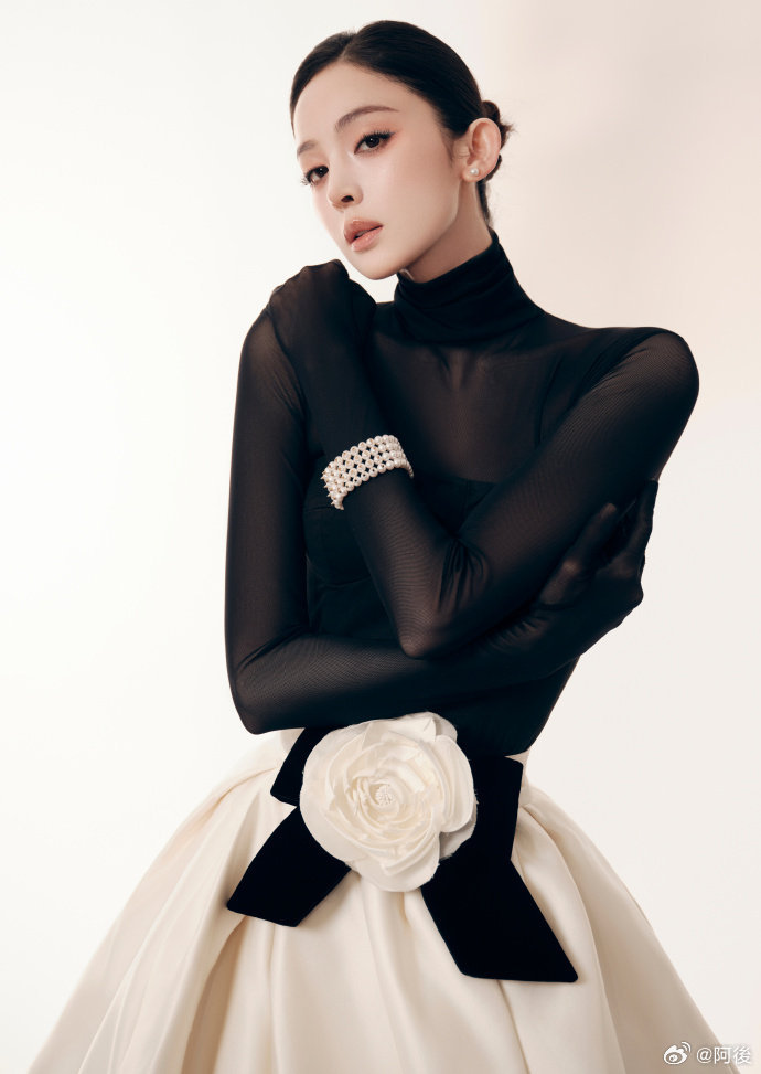 娜扎山茶花造型娜扎的造型从来没让人失望过!缎面白裙自带温柔气质,两种风格融合得恰