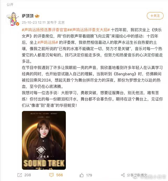 萨顶顶在声鸣远扬回忆浪姐 萨顶顶的这段话,真是让人感到她对年轻一代的真诚关心。她鼓励大家突破自我,热爱自己的事业,只有这样,才能真正找到属于自己的位置。