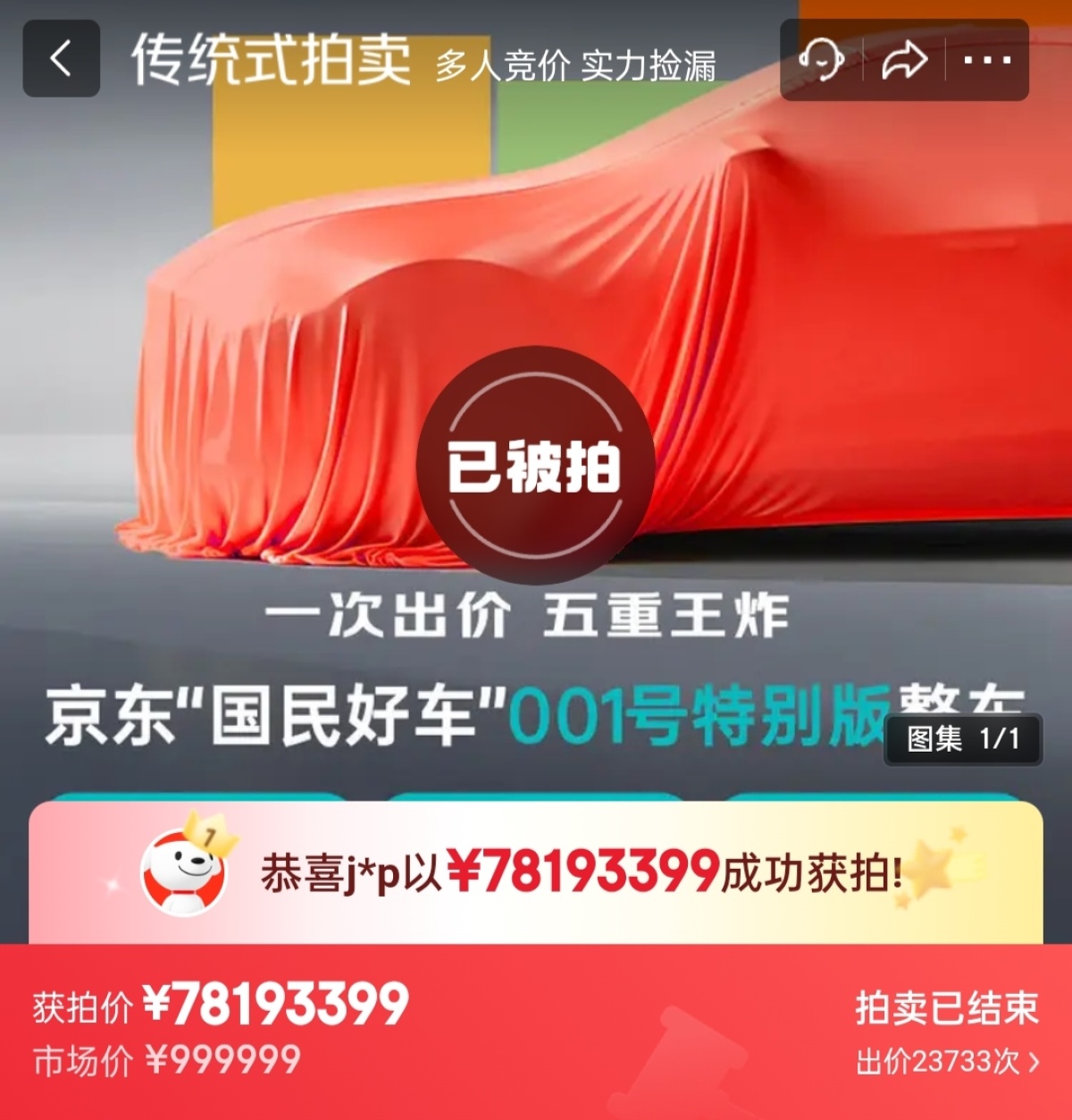 针对此次异常高价,京东汽车发文回应,没想到京东001号“国民好车”拍卖引发了大家如此热情关注,为感谢大家的热情关注,他们将会向每一位参与拍卖出价的用户届时买车后再单独送出价值399元的“国民好车”新车大礼包等权益,并向竞拍出价最接近车辆最终发布价格的用户送一辆车。