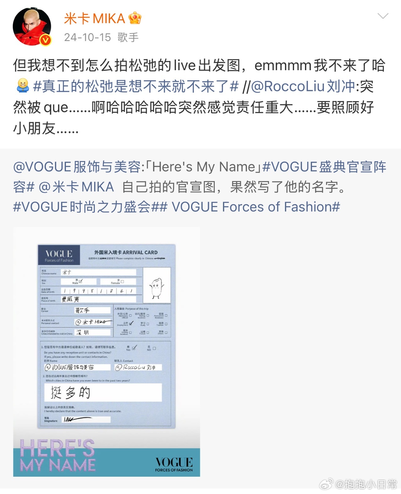 米卡去VOGUE抖的包袱比小品好笑 看VOGUE官宣图才懂,米卡哪是去参加活动,