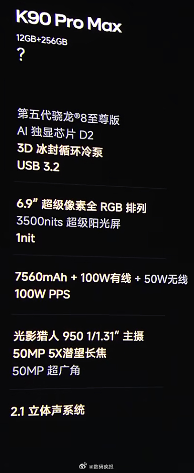 REDMI K90 Pro Max价格(第五代骁龙8至尊版)
