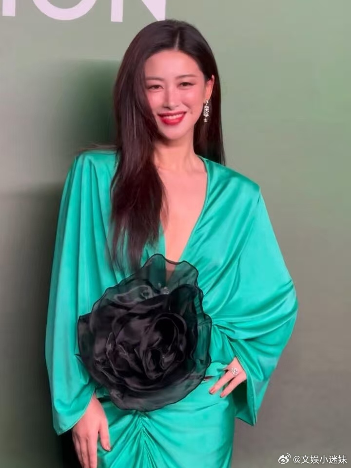 朱珠胸前好大一朵黑玫瑰 这朵黑玫瑰仿若专为朱珠而生,神秘黑色邂逅东方气质,她一转