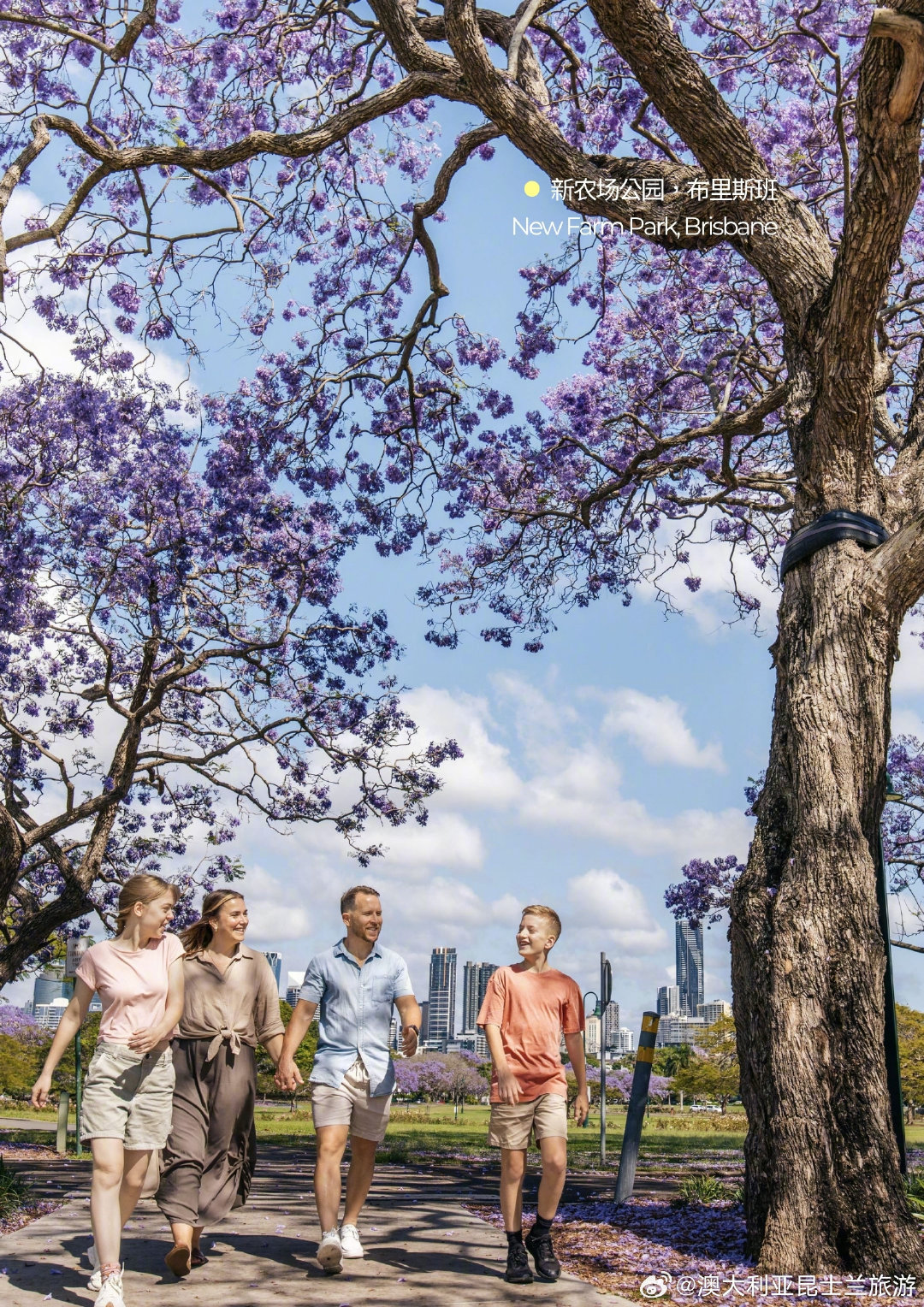 蓝花楹绽放季(Jacaranda blossom)到了,每年的9月下旬到11月中下旬,昆士兰东南部都会被盛放的蓝花楹晕染上“城市名片” 。是时候带上相机,准备用镜头留下这些紫色花瓣雨啦!