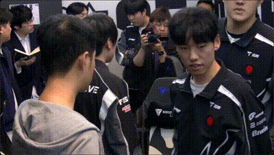 TES首局惨败GEN后,郭皓在休息室内安慰TES中辅两人