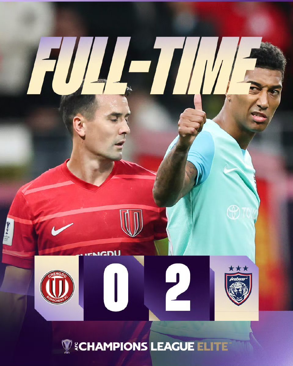 成都蓉城主场0:2柔佛新山 (马来西亚)