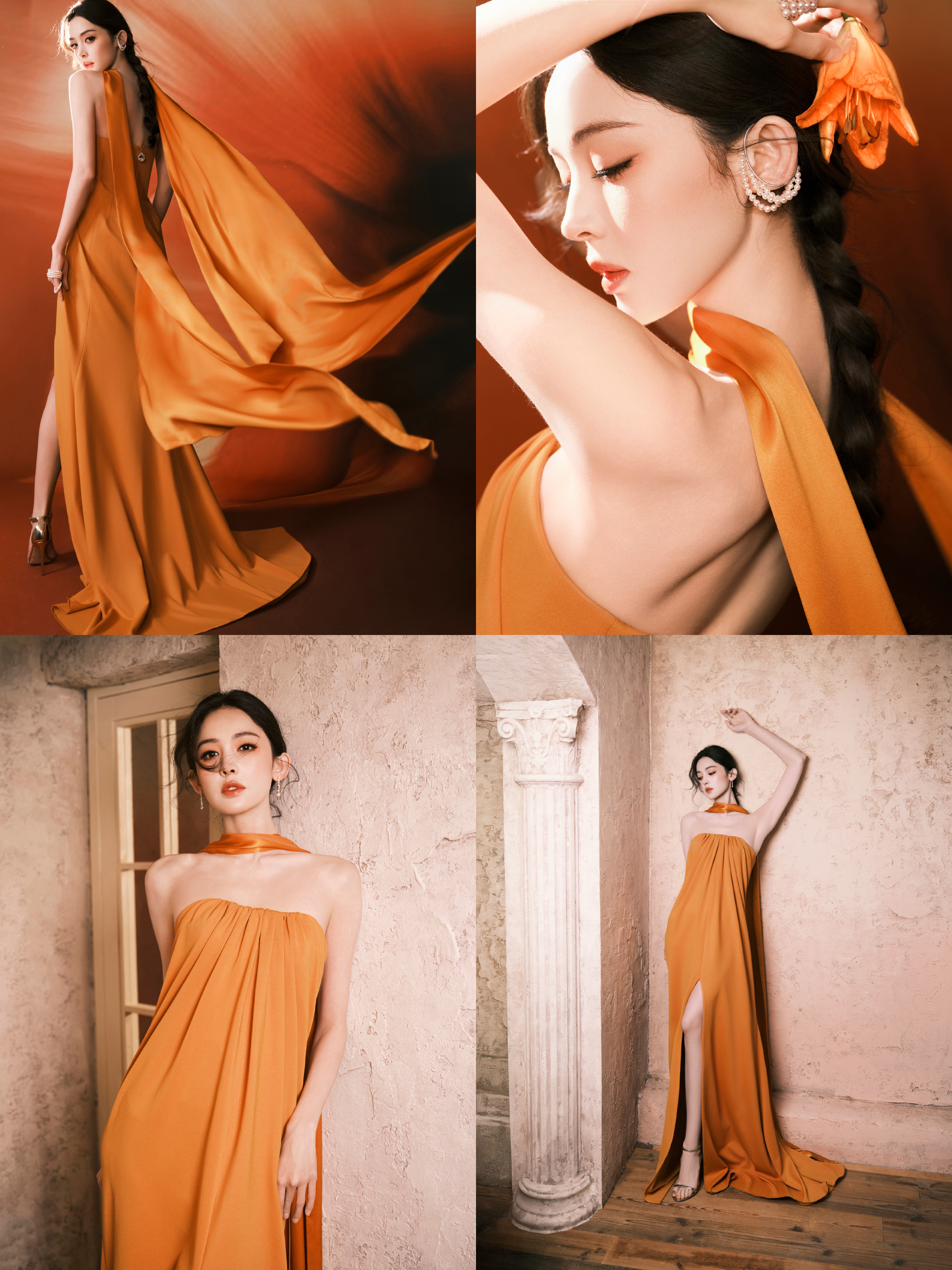 娜扎又出神图了娜扎把橙色穿的好高级 娜扎在VOGUE活动的橙色造型太惊艳!一袭暖橙色长裙适配复古花园主题,绸缎面料随光影流转光泽,飘逸裙摆灵动似云。她手持花枝浅笑,珍珠配饰衬得气质温婉,每帧画面都像古典油画,把橙色的高级感与复古美揉进细节,美得自带氛围感,让人一眼沦陷!