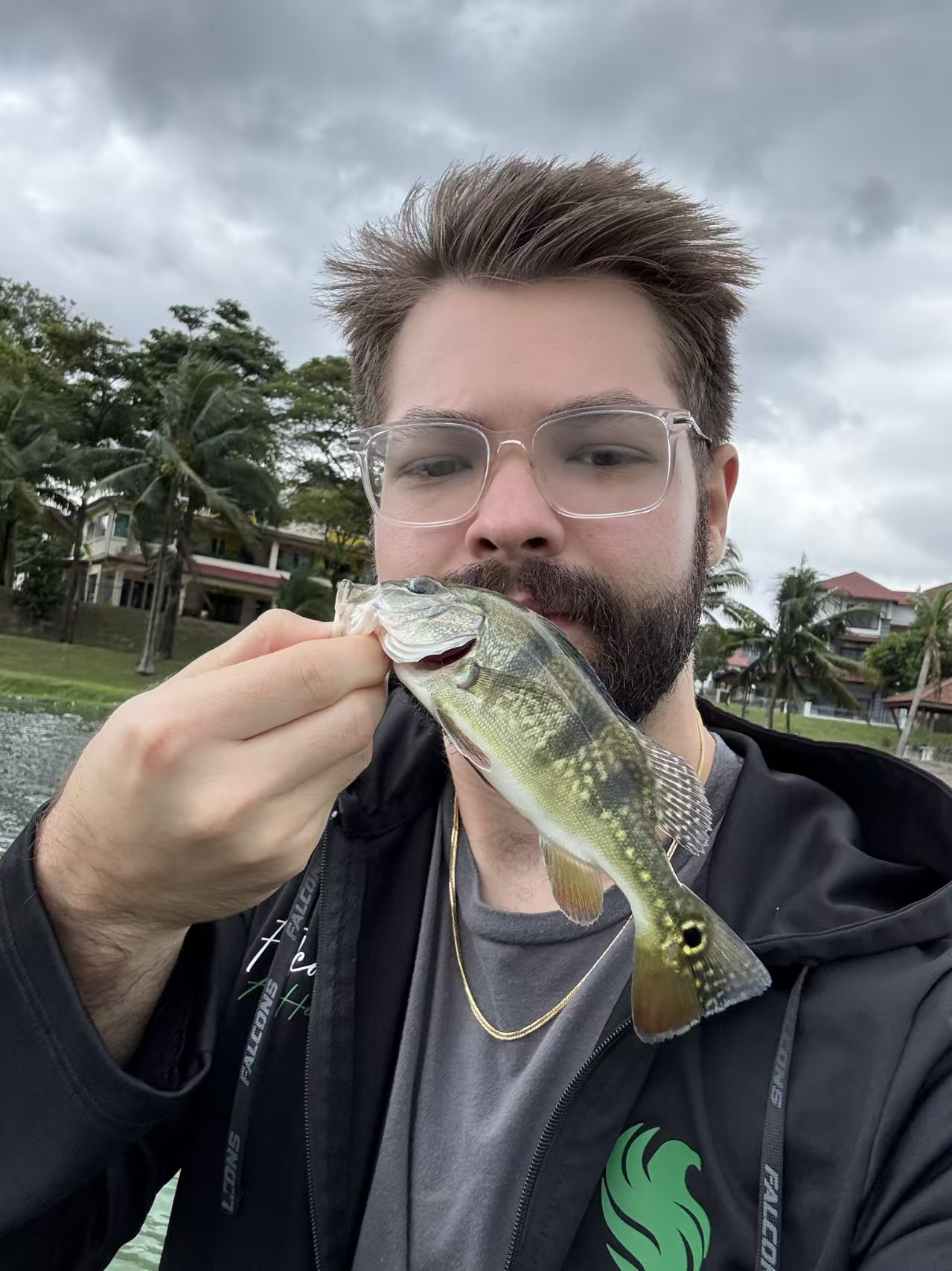 Kickstart社媒再度分享钓鱼:第一次钓上孔雀鲈!