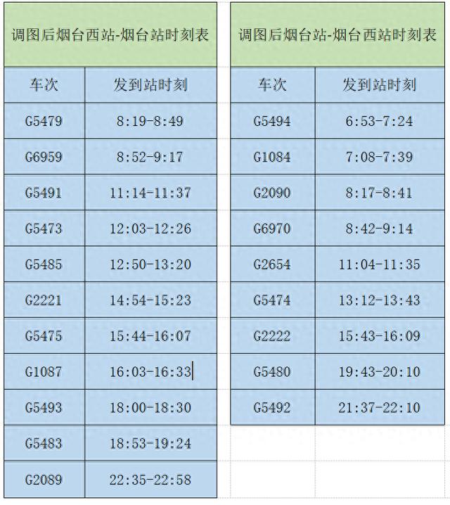 烟台西站—烟台增加为11列、烟台站-烟台西站增加为9列
