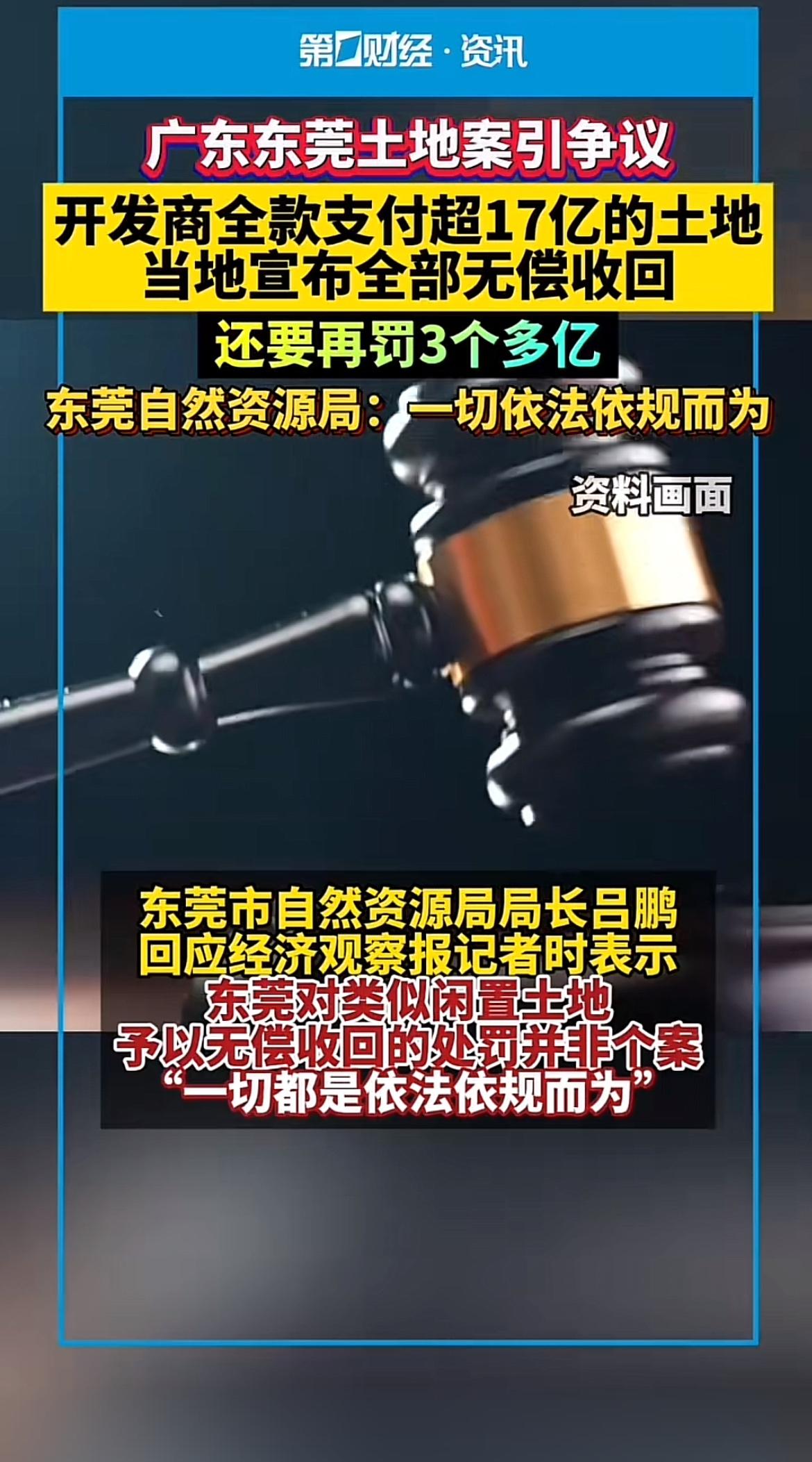 2025年9月这起东莞土地案真的太有争议了。2019年,和创和和融两家公司花17.21亿买下258亩地建紫光芯云产业城,和创付1.67亿得108亩工业用地,和融付15.54亿得150亩商业用地,可商业用地至今没拿到产权证。 2021年土地被启动闲置调查,2023年政府决定无偿收回土地,还罚3.44亿。企业称因疫情,国外设计团队进不来,项目规划推迟,还拿出八十多个设计方案和三千四百万元设计费单据。而且2021年紫光集团破产重整,原董事长又出事,企业认为是疫情和管理方更换拖了进度,但政府还是坚持处罚,这背后的责任归属实在让人捉摸不透。