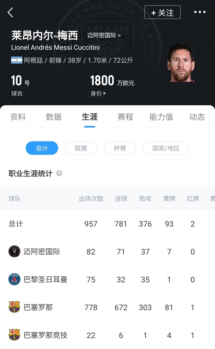 38岁梅西与迈阿密国际当前合同2025年12月31日到期,梅西目前共代表迈阿密国际各项赛事出场82场,打进71球送出37次助攻。