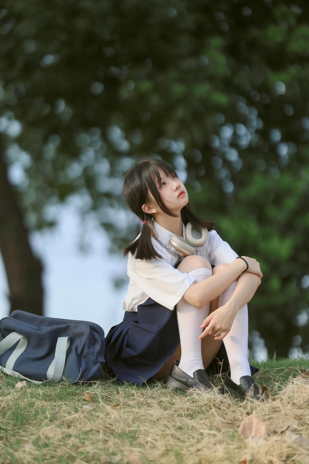 摄影师没有局限于单一的窗边场景,而是拓展到床榻等室内空间,通过场景的转换展现青春的多元状态。在床榻的画面中,仰拍角度与人物伸展的肢体形成呼应,光线在衬衫上切割出的明暗块面,如同一幅青春的抽象画,既展现了身体的线条美,又传递出慵懒松弛的青春质感。 肢体语言的设计是另一亮点,无论是抬手触摸光线,还是俯身凝视窗台,每一个动作都不是刻意摆拍,而是基于“青春日常”的自然延伸,这种“去表演化”的姿态让画面充满生活气息。色彩上保持了统一的低饱和调性,使四张照片形成系列感的同时,也强化了“青春记忆”的怀旧氛围。不过,若能在床榻场景的背景中加入一些更具青春符号的元素(如旧书籍、老唱片),画面的叙事性会更明确。