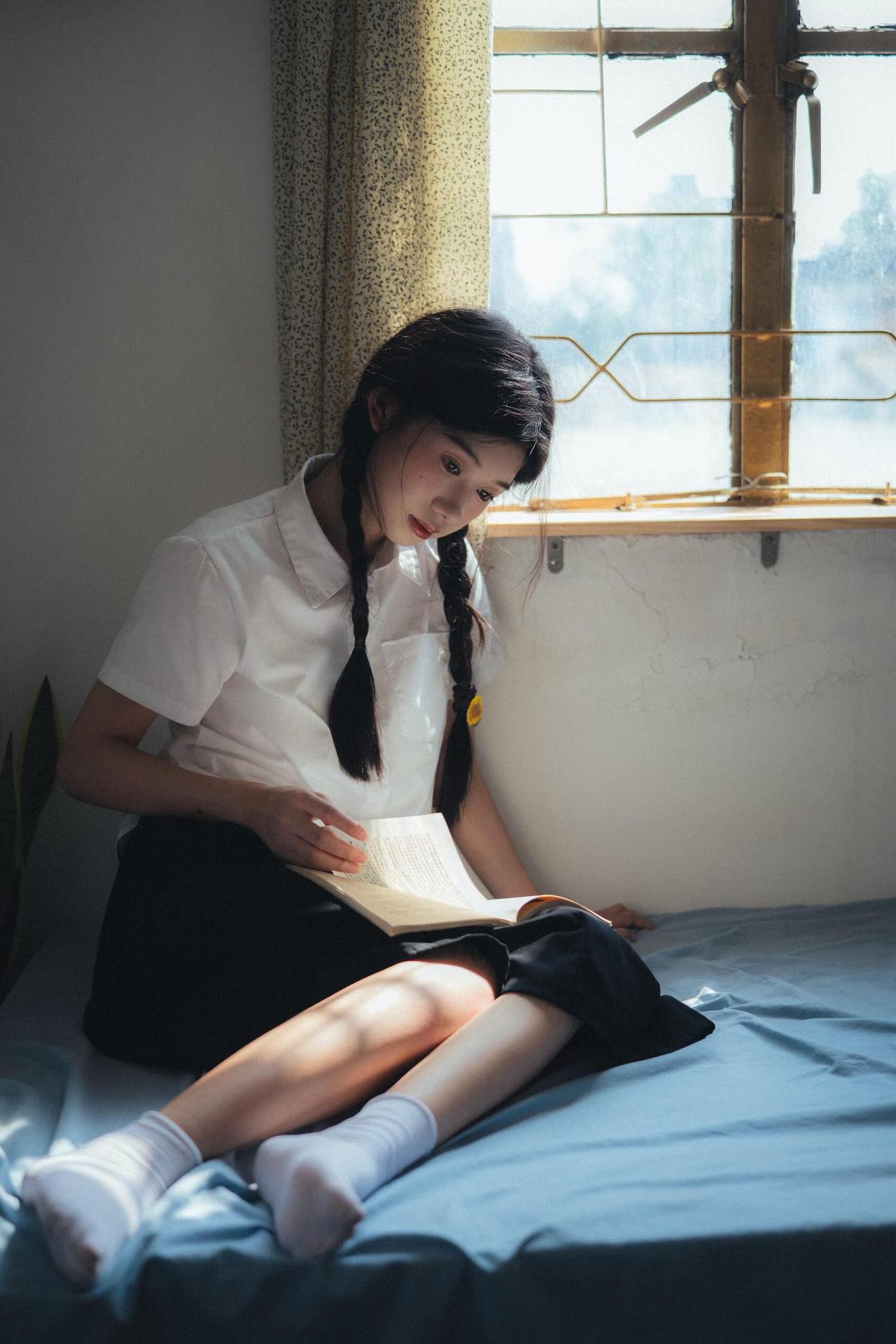 摄影师没有局限于单一的窗边场景,而是拓展到床榻等室内空间,通过场景的转换展现青春