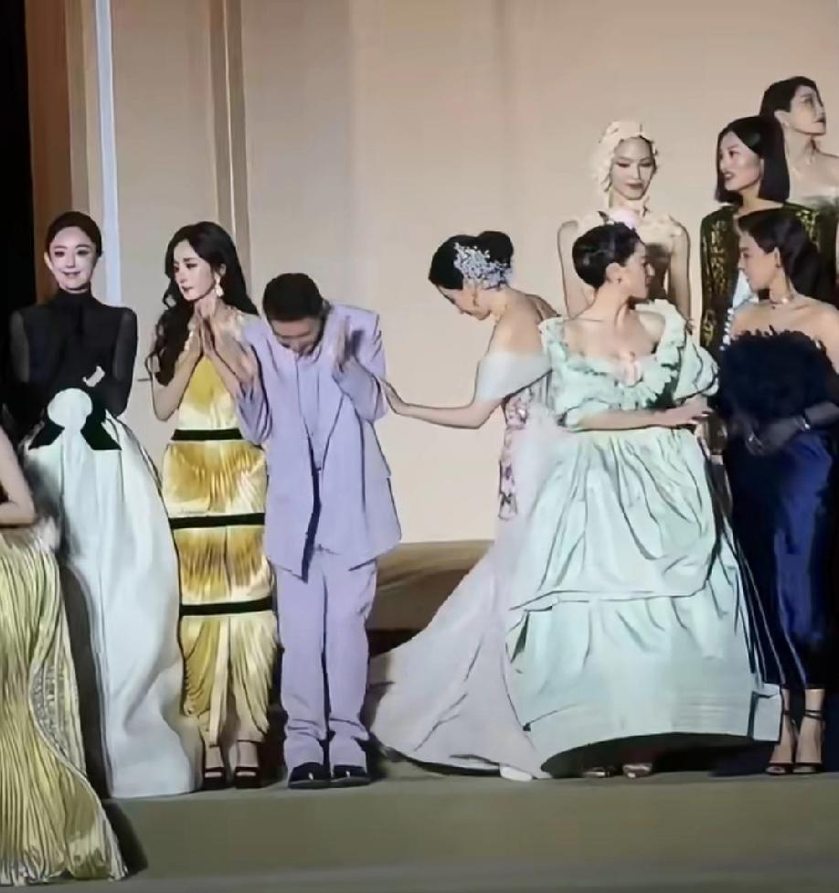 晚会上刘亦菲杨幂与一众女明星合影的时候,刘冲硬是从两人中间挤进来,挤在两人中间的时候他还踩到了刘亦菲的礼服。 刘亦菲一只手推他,一只手使劲拽自己的裙子,这一幕刚好被镜头给拍摄下来了,很多人都觉得刘冲没礼貌。 一个男生非要挤到两个女生中间的位置合影,而且还踩到了刘亦菲的礼服裙摆,还好刘亦菲发现及时,要是她没发现,直接往前走,被绊到都是小事,万一走光那就麻烦大了。 反正我是觉得他挺没礼貌的,就算你非要站在两人中间合影,也要和人打声招呼再站在两人中间,后面也就不会发生他踩到刘亦菲裙摆的事了。 话说他一个大男生,为什么非要站在杨幂和刘亦菲中间合影,他是什么咖位很大影响力很大的演员吗?为什么以往都没有听过他的名字?