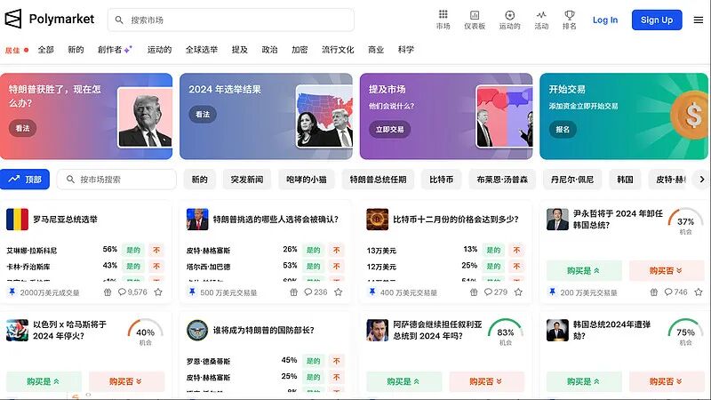 这个平台叫Polymarket。它不是传统意义上的博彩网站,也不是新闻媒体的民意调查平台。它是一个基于区块链的预测市场平台(PredictionMarket),允许用户用加密货币对现实世界的事件结果下注。