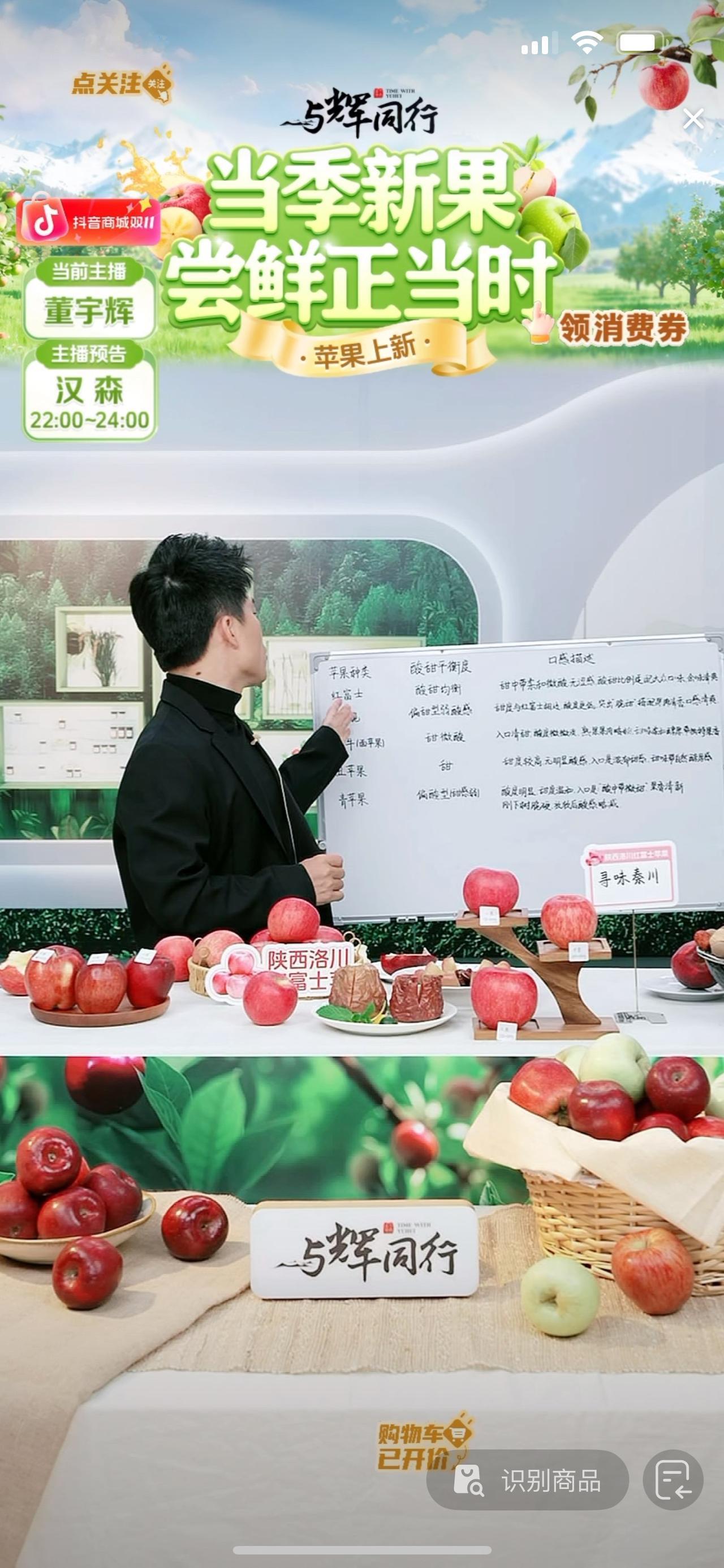 业绩又是轻松过亿的一天。 我也纳闷了, 昨天货盘也没什么特别的啊, 也是衣服水果蔬菜还有三精护肤品, 就是晚上宇辉上播的时候, 上了与辉同行定制四件套吗? 单量还不是很多, 因为我又没抢到。[大笑][大笑] 宇辉上播的时候热度值是很高, 但是能够破亿我就有点难以置信了。 这小子昨天晚上也没怎么认真卖货, 就是开了一个苹果“大会”。 昨天上架了五款苹果, 这小子把几种品格酸甜度, 还有详细的口感描述, 详细的做出了对比, 大家一目了然, 可以明明白白的购买, 这就是宇辉的卖货方式, 同一个直播间, 同样的苹果, 也让大家货比三家, 不管是性价比还是口感上, 都让大家有个对比, 避免入坑。 与辉同行昨天GMV1.295亿, 人数峰值24.8万, 账号涨粉6.4万。 本月总业绩21.065亿, 真的是做到了平均每天一个亿, 这个月与辉同行25亿的目标应该是稳了。 兰知春序直播八小时, 销售业绩1250万, 人数峰值5.1万, 账号涨粉1.7万。 本月总业绩2.685亿。 非常优秀的成绩啊, 每周双休, 每天直播八小时, 这个月总业绩破三亿应该是没大问题。 宇辉下播我有点困意了, 十二点去看了数据, 把我惊讶的困意没了, 折腾到两点多才睡着的。 有意外,还有惊喜…… 散会! 董宇辉 与辉同行 兰知春序