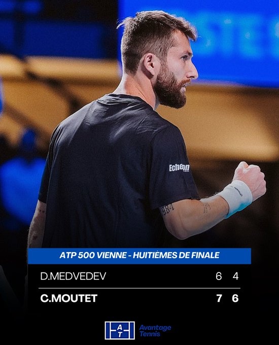 法国选手穆泰以7-6(3)6-4击败6号种子梅德韦杰夫,取得两人今年三次交手中的第二场胜利,也为上周阿拉木图站决赛的失利实现复仇,晋级八强。
