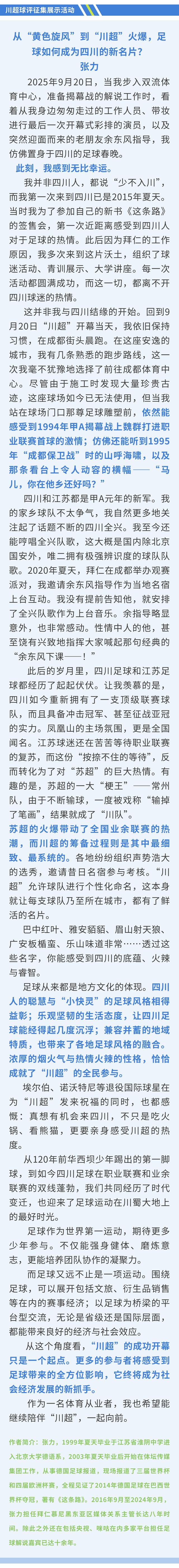 你的观赛故事,同样值得被看见!战术分析的硬核长文、赛场瞬间的温情记录、灵光乍现的趣味段子……你的球评将是“川超”全民狂欢的独特风景线!