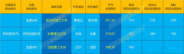 综上所述,长春理工大学拥有微弱的领先优势,哈尔滨理工大学与长春理工大学伯仲之间,沈阳理工更为靠后!