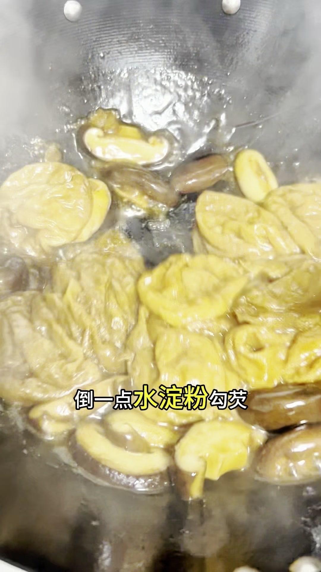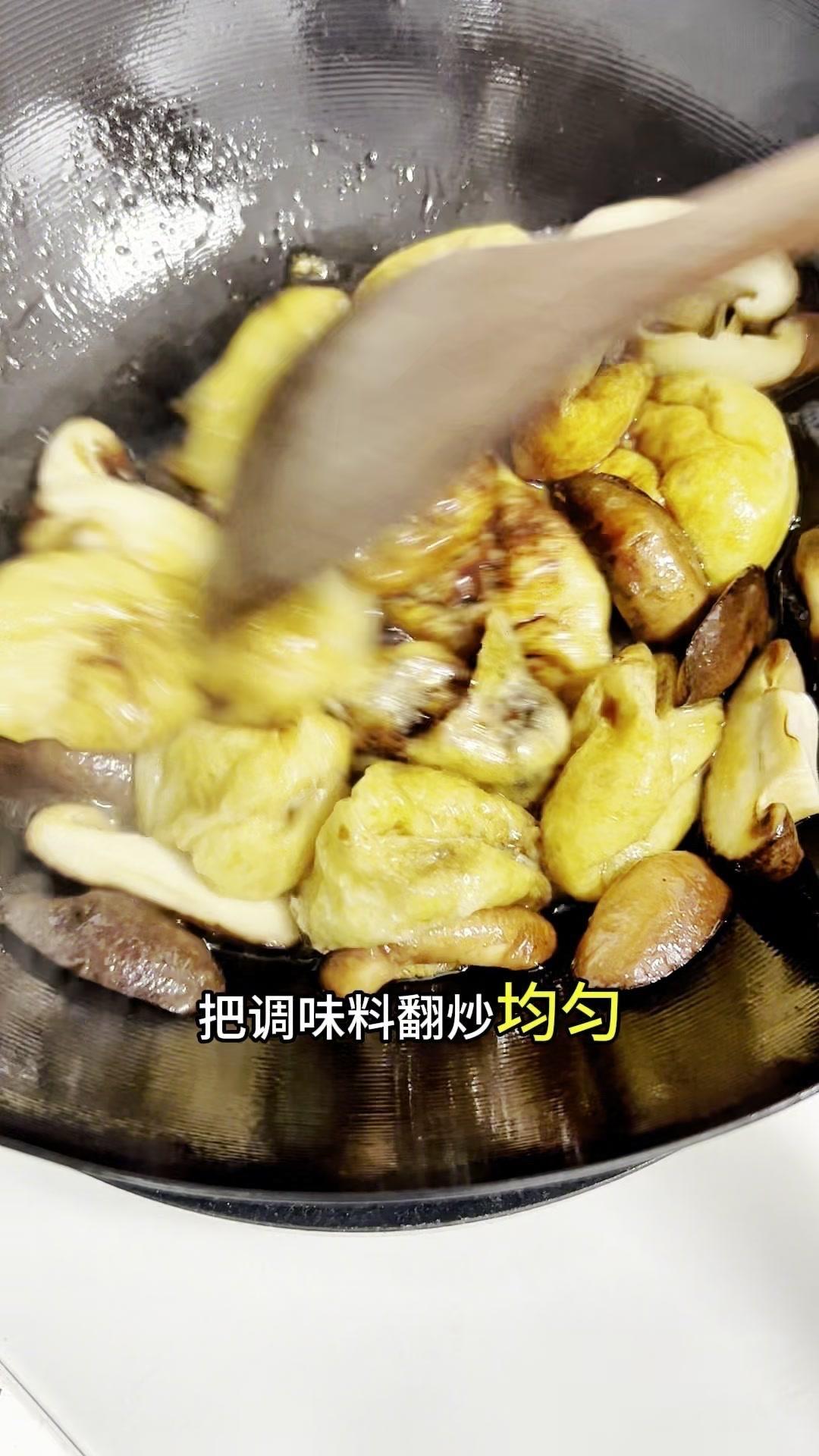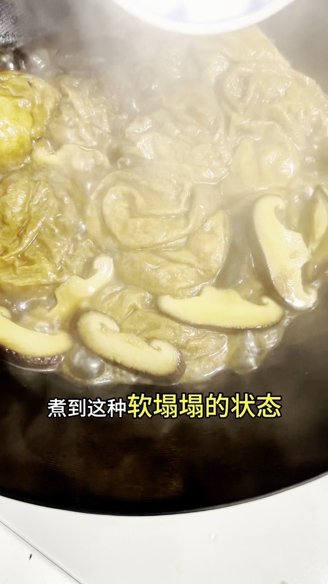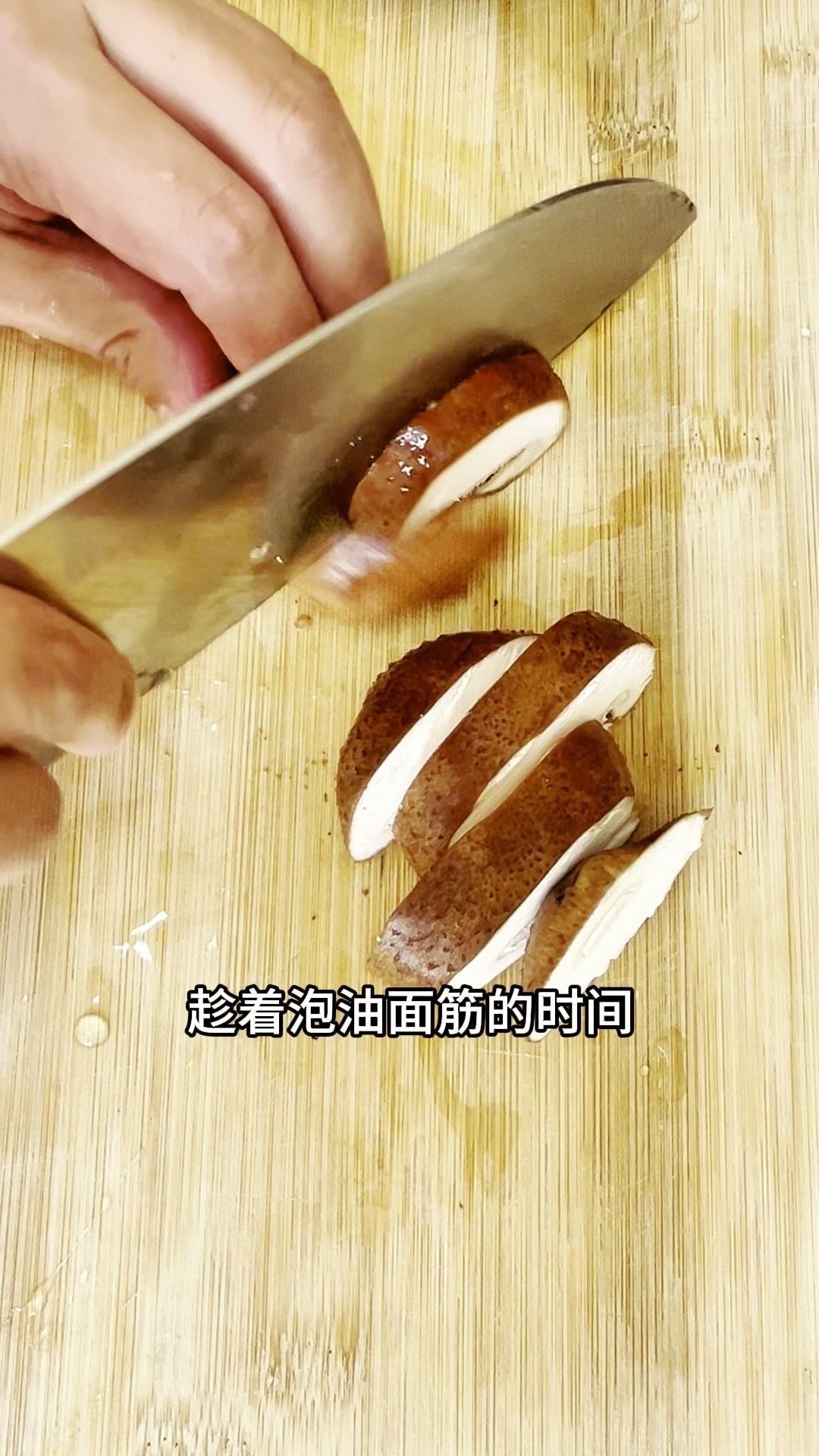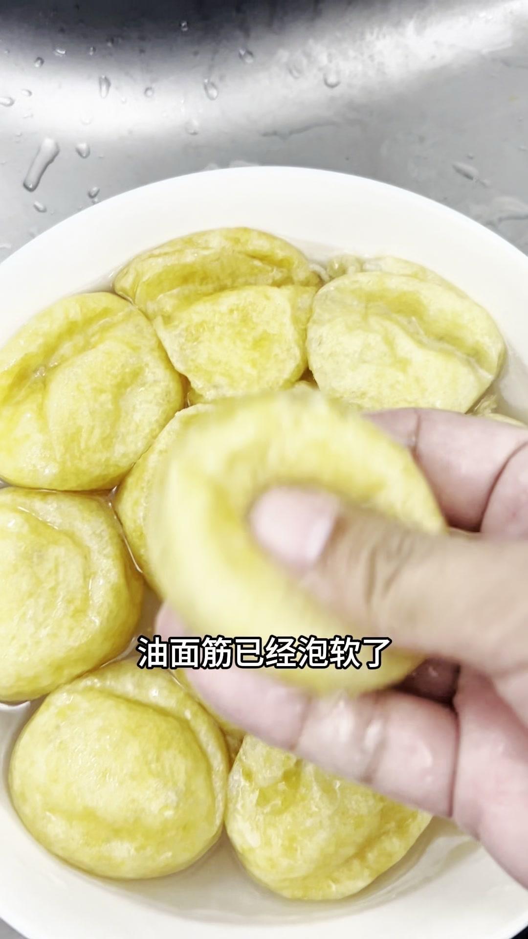 今天做了道香菇烧油面筋,特别适合牙口不好的老人,软糯又有弹性,吸饱了汤汁,一口下去全是满足感~ 选无锡油面筋,韧性好不容易炖烂,先用筷子穿洞方便入味,冷水泡10-15分钟,用盖子压一下就吸饱水变软了。 泡油面筋时把香菇和小油菜切好,油菜焯水备用。油面筋挤干水分下锅前,先煸炒香菇出香味,再放挤干水的油面筋一起炒,加生抽、香醋、一点点老抽提色,按照上海做法撒了点白糖,翻炒均匀后加清水,盖上锅盖煮10分钟。 煮到油面筋软塌塌的,倒水淀粉勾芡,摆上焯好的油菜,出锅!吸饱汤汁的油面筋,软糯有弹性,老年人吃刚好~