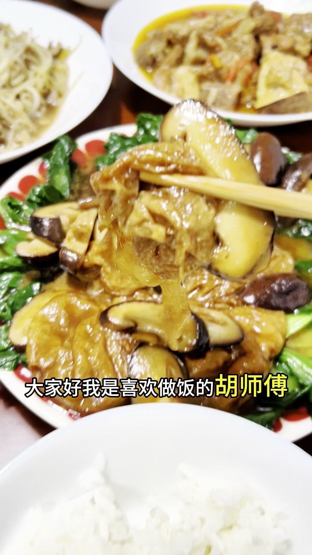 今天做了道香菇烧油面筋,特别适合牙口不好的老人,软糯又有弹性,吸饱了汤汁,一口下