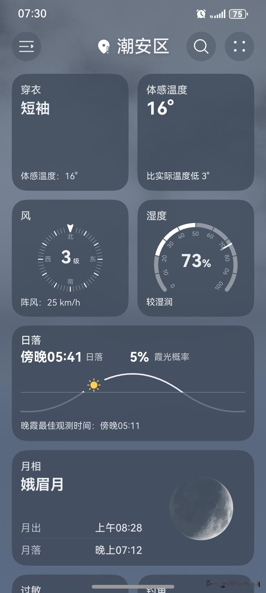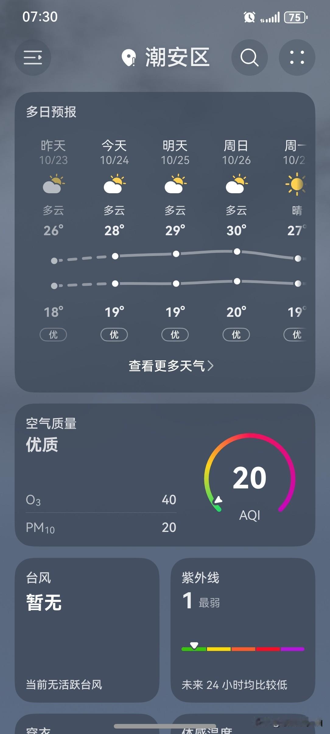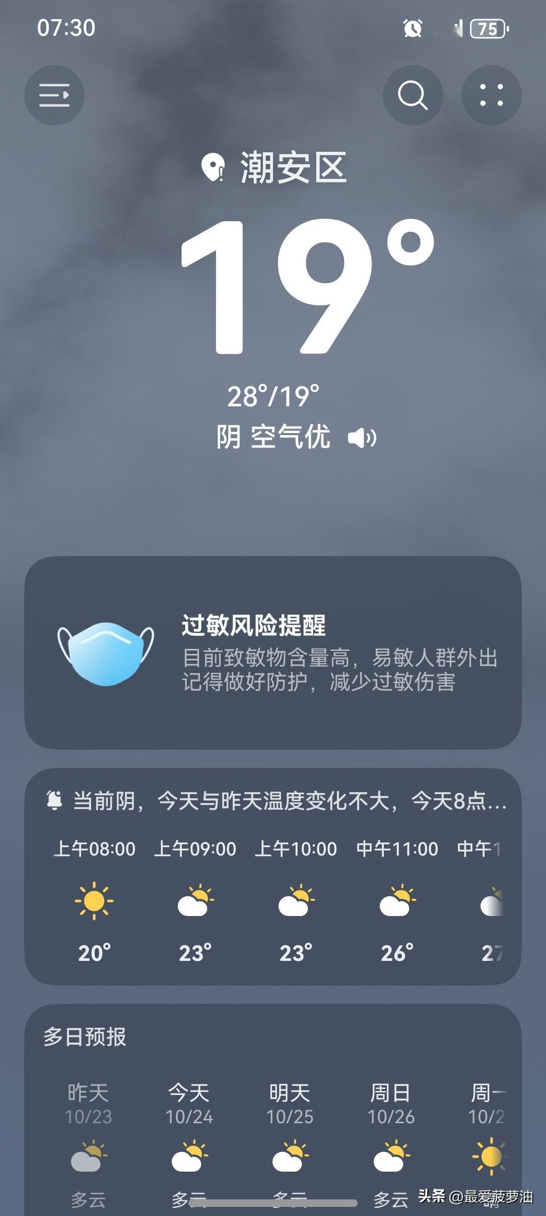 广东:气温要开始回升啦! 你准备好了吗? 24~26日, 我省大部分市县转多云, 气温趋于回升, 但昼夜温差较大, 需要注意防寒保暖。 今天(24日), 潮州多云, 气温19~28℃, 此刻气温19℃, 体感温度16℃。 看看今天的天空, 云量有点多, 早上的风依然有点大, 凉飕飕的…… 天气突然就冷了, 睡眠质量突然就好了…… 被窝的温暖让人格外留恋, 这几天, 应该多了许多起床困难户吧! 这么凉爽的天气, 值得五星好评! 如此天气! 元芳,你怎么看?