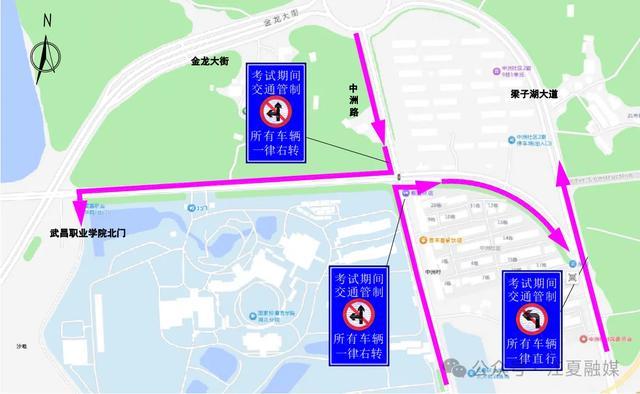 3.明泽街与中洲路路口(沿线涉及武昌职业学院):明泽街(中洲路—梁子湖大道)、中洲路(武昌职业学院—明泽街)、中洲路(中洲转盘—明泽街),交管部门将根据交通流量情况,采取临时交通管制措施;